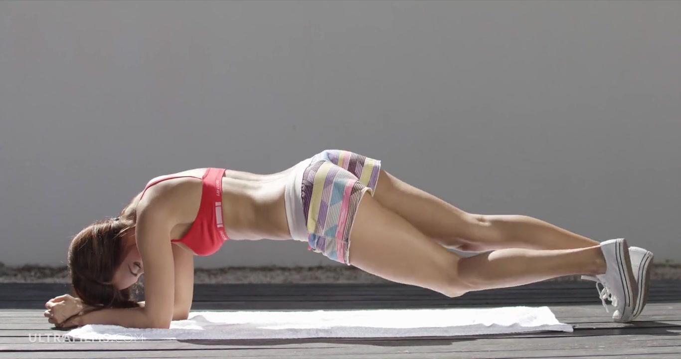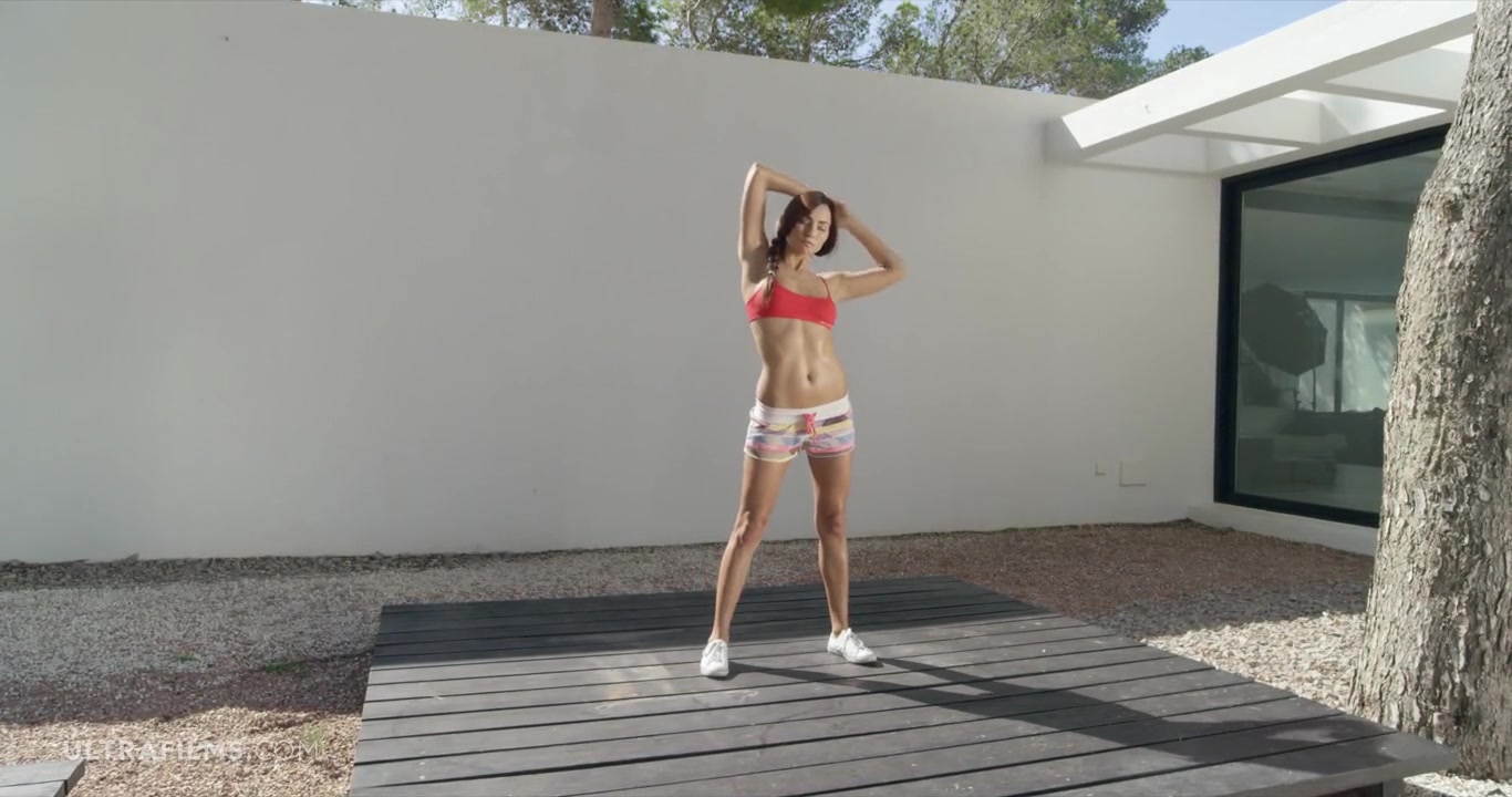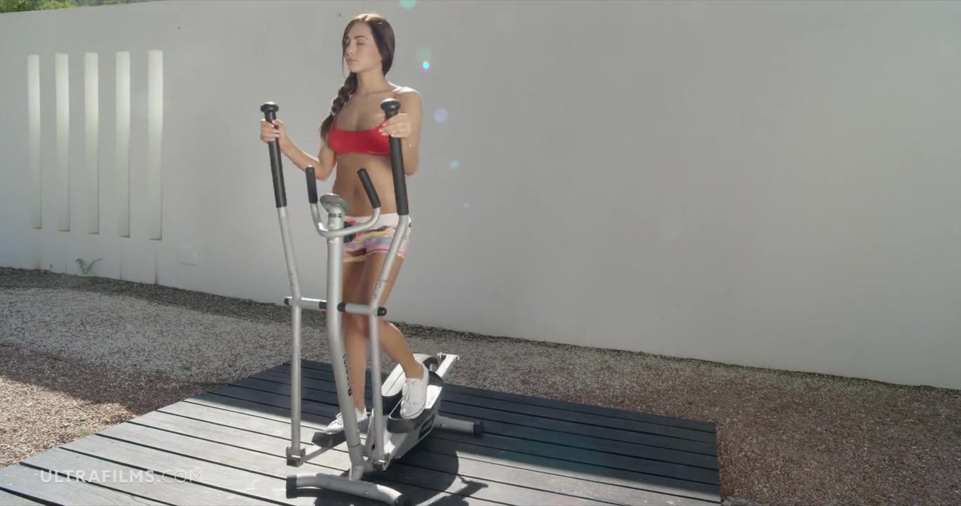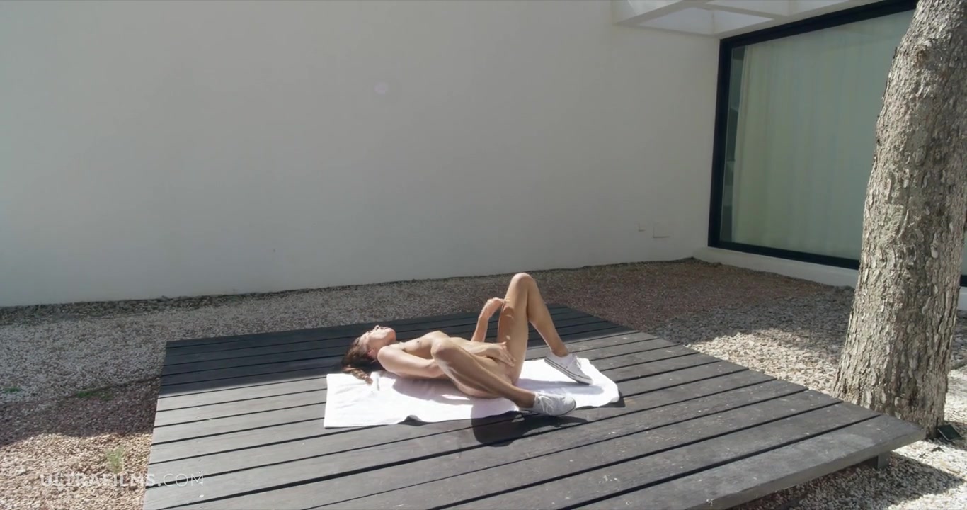 «Привлекательная загорелая девушка устав заниматься на тренажере решила сделать небольшой перерывчик и немного пошалить с жаждущей любви киской. Расстелив подстилку смуглая куколка с легкостью сняла с себя красные трусики и со всей страстью на лице прикоснулась к чувствительному клитору, начав его нежно массировать пальцами круговыми движениями. Доставляя себе подлинное удовольствие малышка и не заметила как завелась до придела, с предвкушением ожидая какой мощный финальный оргазм ее ждет в финале мастурбации.»