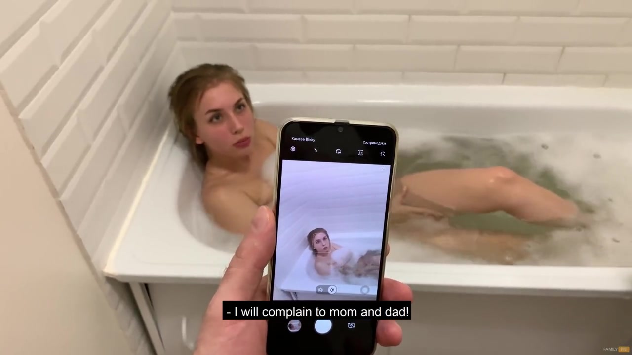 «Похотливый русский чувак застукал в ванной мастурбирующую сестричку, на которую вытащил член и по тихому стал дрочить. Вскоре сладко стонущая малышка заметила кобеля с телефоном в руке начав его всячески упрашивать удалить видео. Жеребец сразу решил воспользоваться ситуацией и с помощью шантажа раскрутил сучку на глубокий минет. Находящаяся в безвыходной ситуации куколка послушно открыла ротик и на опыте показала как классно умеет сосать от первого лица. После прелюдии заведенная хуем краля попросила братуху побаловать ее уверенным проникновением, наслаждаясь каждым мгновением их жаркого секса в теплой водичке.»