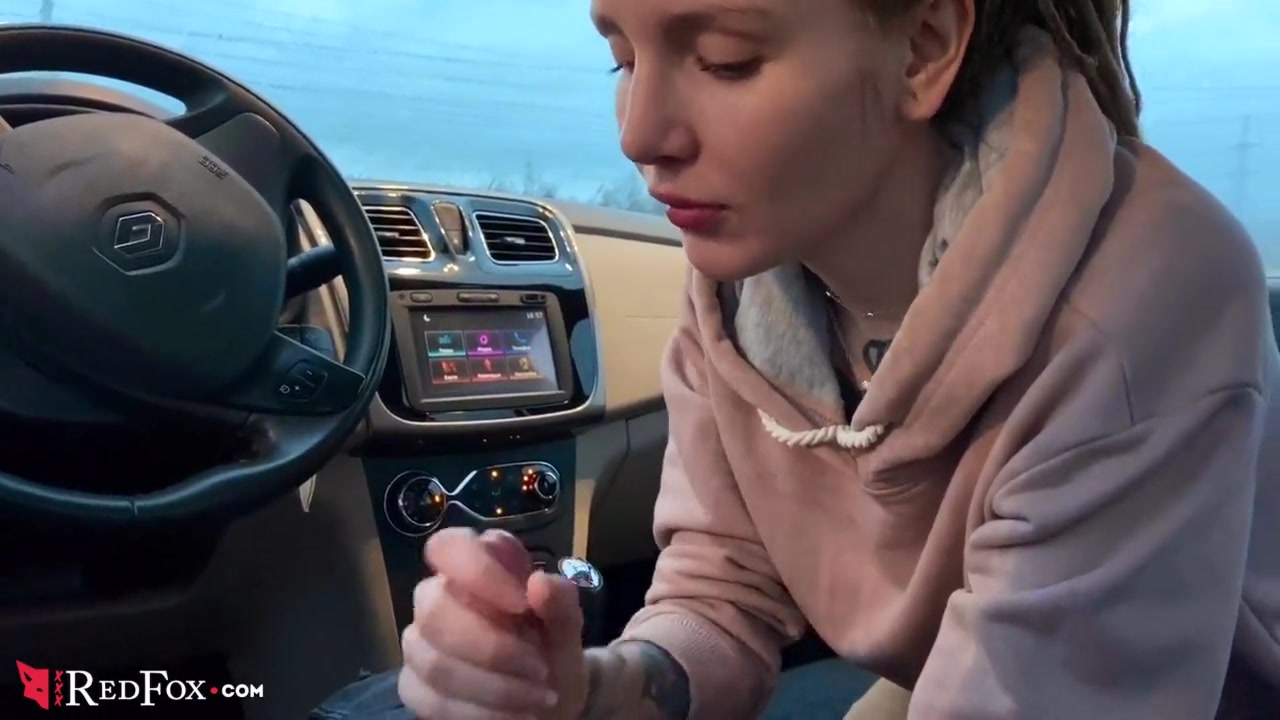 «Молодая русская телочка катаясь в парнем по городу на автомобиле попросила самца как можно скорее припарковаться и дать ей возможность пососать хуй. Жеребец охотно исполнил ее пожелание и как только девичьи губки прикоснулись к детородному органу, кавалер испытал ни с чем не сравнимое оральное удовольствие, с радостью наблюдая как девичьи губки приятно скользят по всей длине пульсирующего фаллоса. Любвеобильная блондиночка с дредами умело показала на что она способна в первоклассном минете, который балдеющий пацан снял на видеокамеру от первого лица.»