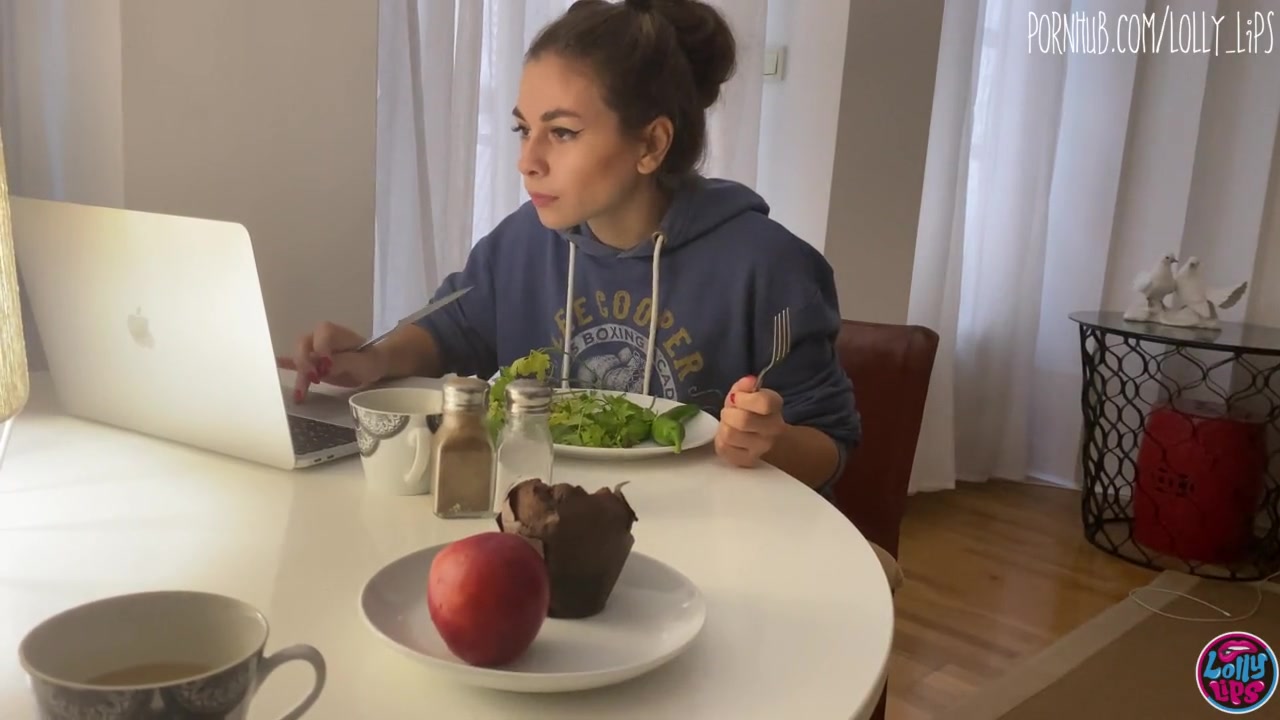 «Сексапильная русская девушка Lolly Lips, работая за компьютером привлекла на себя внимание возбудившегося парня, который запрыгнул к ней на кровать и сразу стал пробираться пальчиками к влажному клитору, потеребив который моментально завел красотку на их совместный секс. Грудастая нимфа с гордостью сбросила с себя одежду и очень нежно начала сосать хахалю пенис, доставляя партнеру ни с чем не сравнимый оральный экстаз. Завершив прелюдию малышка вылезла на самца сверху и от первого лица тряся у лица большой грудью устроила на члене фантастическое родео до полного удовлетворения партнера.»