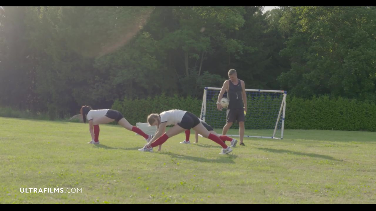 «Молодые девчонки соблазнительно виляя задницами на футбольном поле, возбудили опытного и очень похотливого тренера, который всегда рад увидеть на своем болте скачущую красавицу. Возбудив малышек во время тренировки, мускулистый кобель попросил их раздеться и показать на что они способны в сексе. Няшные куколки с радостью приняли его вызов и не долго думая сбросили с себя спортивную форму и прямо на поле принялись ему дружно сосать. От нахлынувшего орального экстаза жеребец не слабо прибалдел, наслаждаясь каждым мгновением начавшейся группвовухи, в финале которой он жаждет кончить им прямо на лица.»