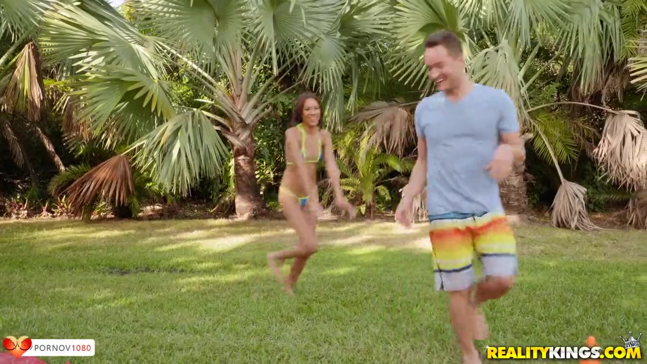 «Парень развлекается с красивой мулаткой в купальнике во дворе. Он охлаждает телку, заливая её водой из шланга. Цыпочка выглядит нереально сексуально, когда купальник прилипает к её смуглому телу, поэтому парень и возбуждается. Теперь он предлагает перейти от развлечений до секса. Девица не против, она делает ему смачный минет во дворе и отдается в киску, получая удовольствие. Кончает ей бойфренд на попку.»