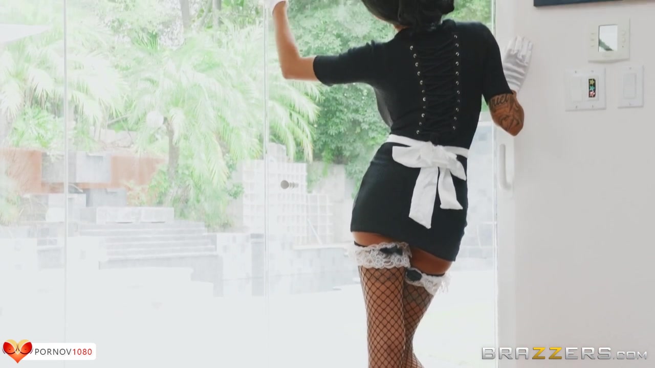 «Парня соблазняет на интим привлекательная горничная. Она во время мытья окон оголяет свои силиконовые сиськи и сосками берется тереться о стекло, что выглядит нереально соблазнительно. Чел ведется на её соблазнительное тело и спешит угостить сучку своим членом, а так же вылизывает обе её дырки. Во время жаркого траха хозяин дома заливает тело брюнетки мыльной пеной, что выглядит безумно развратно.»