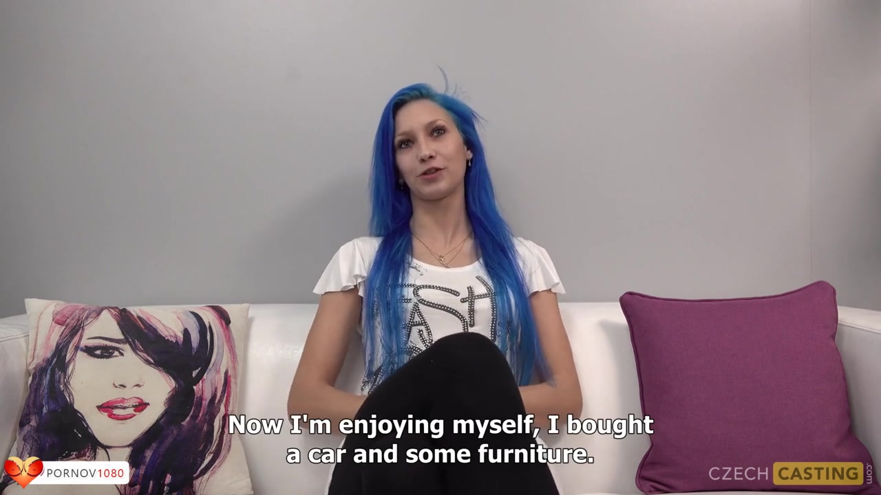 «Худая телка с синими волосами раздевается на кастинге и показывает своё привлекательное тело. Она имеет маленькие сиськи, бритую киску и небольшую, но округлую форму. А уже вскоре эта стройная проказница принимается делать минет, чтобы продемонстрировать не только внешность, но и умения. Худышка отлично поработала ротиком и потом уже отдалась в бритую вагину на диване, получая удовольствие. Сперма пролилась ей на задницу.»