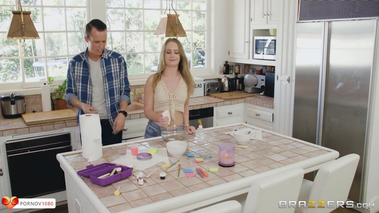 «Парня возбуждает домашний наряд любимой девушки, которая вместе с ним готовит вкусный ужин. Бойфренд насколько сильно заводится, что достает пенис и принимается мастурбировать, поглядывая на попку девицы. Он не кончает от дрочки, белокурая крошка видит стояк и сама его берется ласкать. Готовка подождет, а вот любовные утехи нет. Парочка на кухне берется страстно ебаться с окончанием на милое лицо девчонки.»