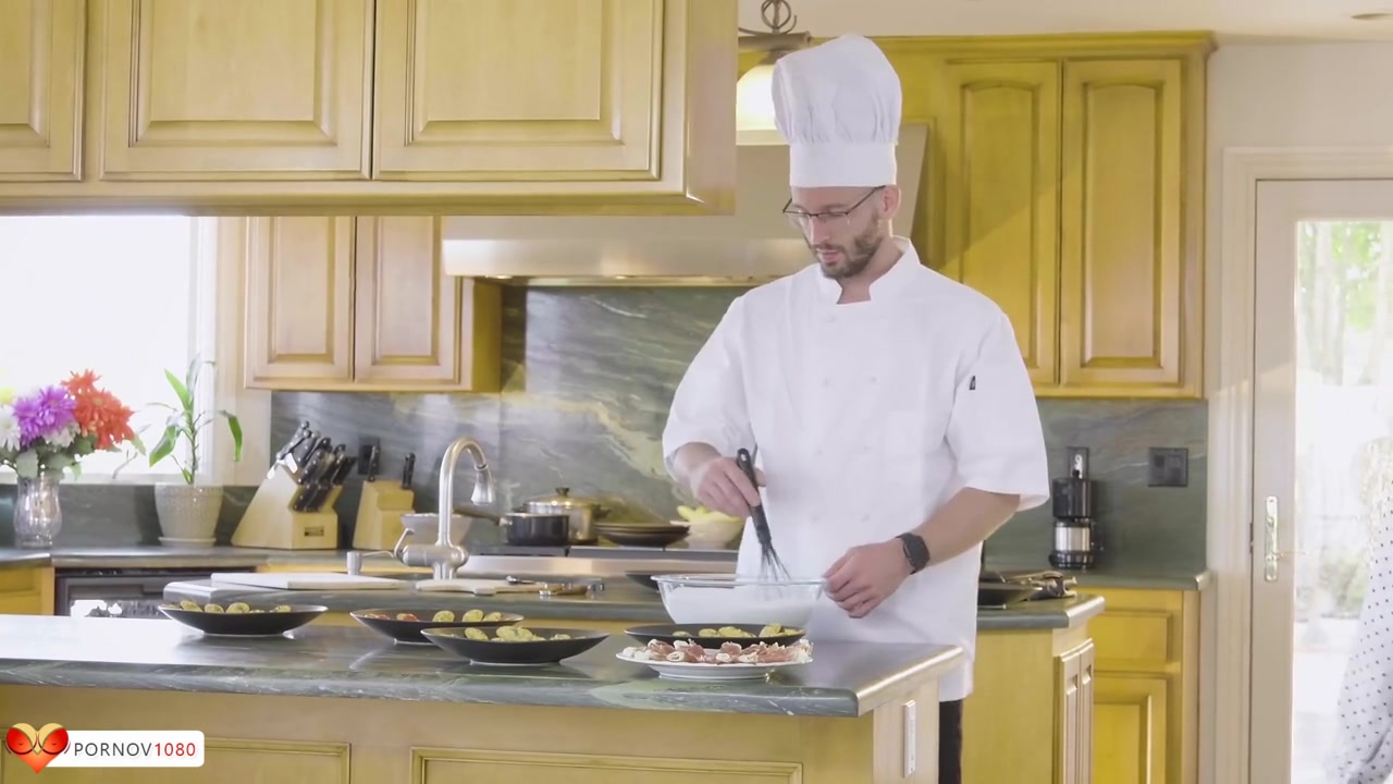 «Муж хочет, чтобы званый ужин прошел идеально, поэтому приглашает опытного повара, которого его супруга уже вскоре соблазняет на секс. Привлекательной телке уж очень сильно понравился этот парень, поэтому она вызвалась ему помочь и отдалась в пизду на столе. А ещё стройная проказница сделала ему смачный минет. Выебанная и кончившая несколько раз цыпочка попросила слить ей сперму в стаканчик, чтобы она могла её выпить.»