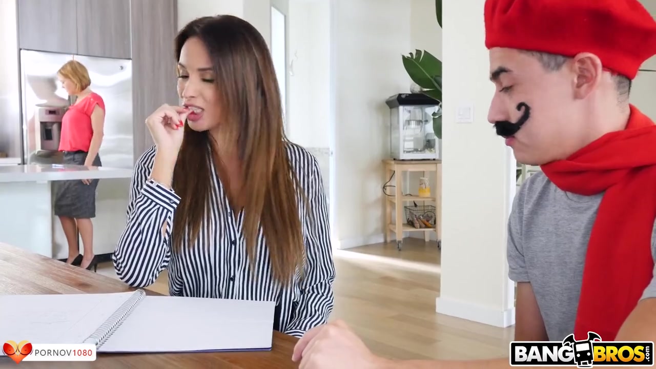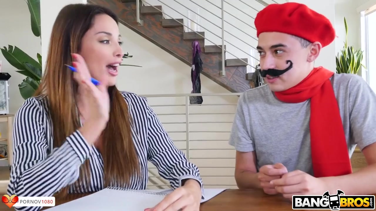 «Зрелая учительница французского языка решает развлечься с забавным студентом, который надел красный берет и приклеил картонные усы перед занятием. Эта грудастая бестия взялась полировать пенис паренька, а после минета отдалась ему в пилотку на диване, сама же получая нереальное удовольствие от полового акта с ним. Этот молодчик не только трахнул её и насладился минетом, но ещё и пизду вылизал в процессе.»
