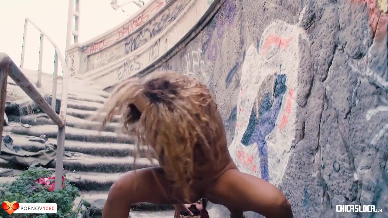 «Кудрявая телка с загорелым телом показывает свои прелести в переходе под шоссе. Цыпочка раздевается практически полностью, из одежды на ней остается только откровенное белье, которое совсем не скрывает сиськи и письку. Жаркая бестия с татуировками на теле вскоре соблазняет военного, которому отдается прямо тут же. Мужик защищает родину, так что похотливая развратница благодарит его за это минетом и сексом.»