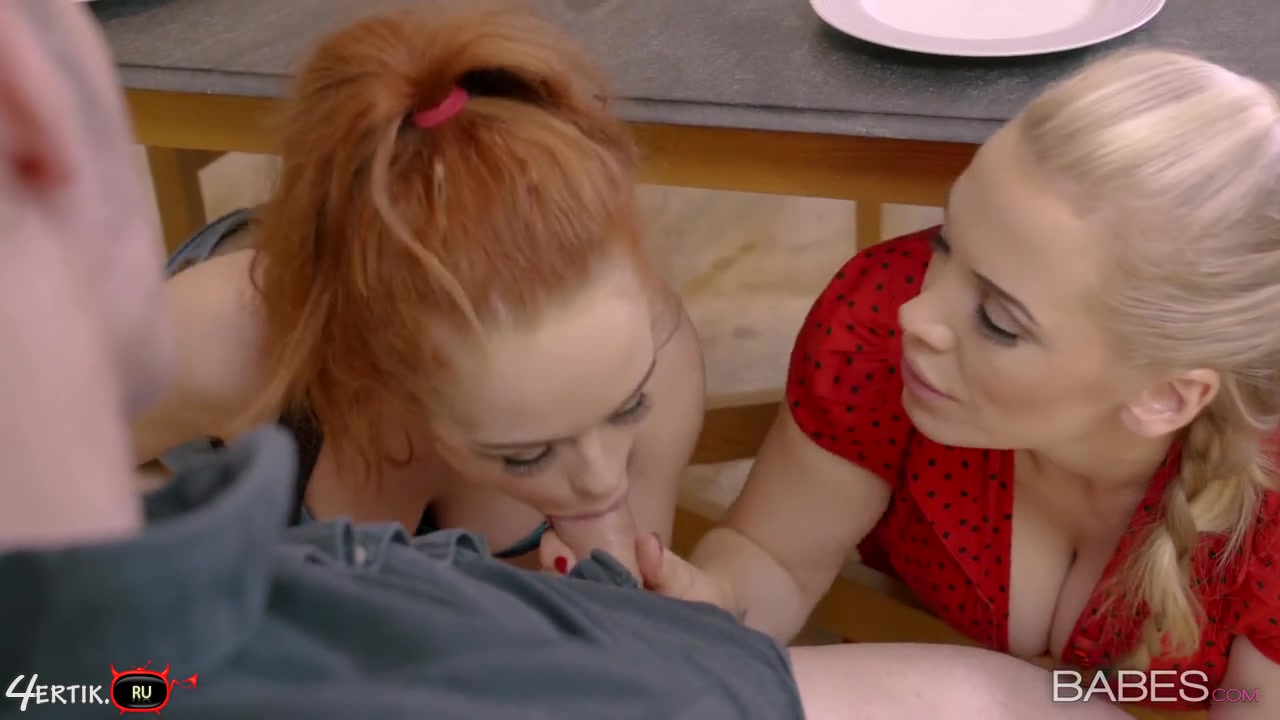 «Сперва молодой парень вылизал пизду белокурой мамки рыжей девушки в ванной комнате, а потом зрелая бестия отплатила ему тем же. Опытная бестия залезла пол стол во время обеда и принялась сосать хуй пока дочка вышла из кухни. Рыженькая телка застала мать за этим занятием, но злится не стала. Привлекательная девчонка поступила как взрослая особа, она присоединилась и тоже взялась активно работать ротиком.»