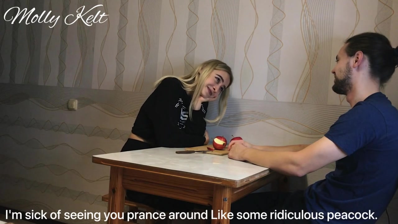 «Привлекательная русская телочка предложила своему бойфренду снять их первое домашнее порно, в котором она с охотно покажет на что способна в постели. Немного пообщавшись о том что они будут делать малышка ринулась поднимать увесистый детородный орган хахаля, поместив его в ротик и нежно пройдясь по всей длине пухлыми губками. После отменно исполненной прелюдии светловолосая цыпочка запрыгнула на стол с широко распахнутыми ножками, с явным удовольствием на мордашке ощущая каждый толчок неугомонного пихаря.»