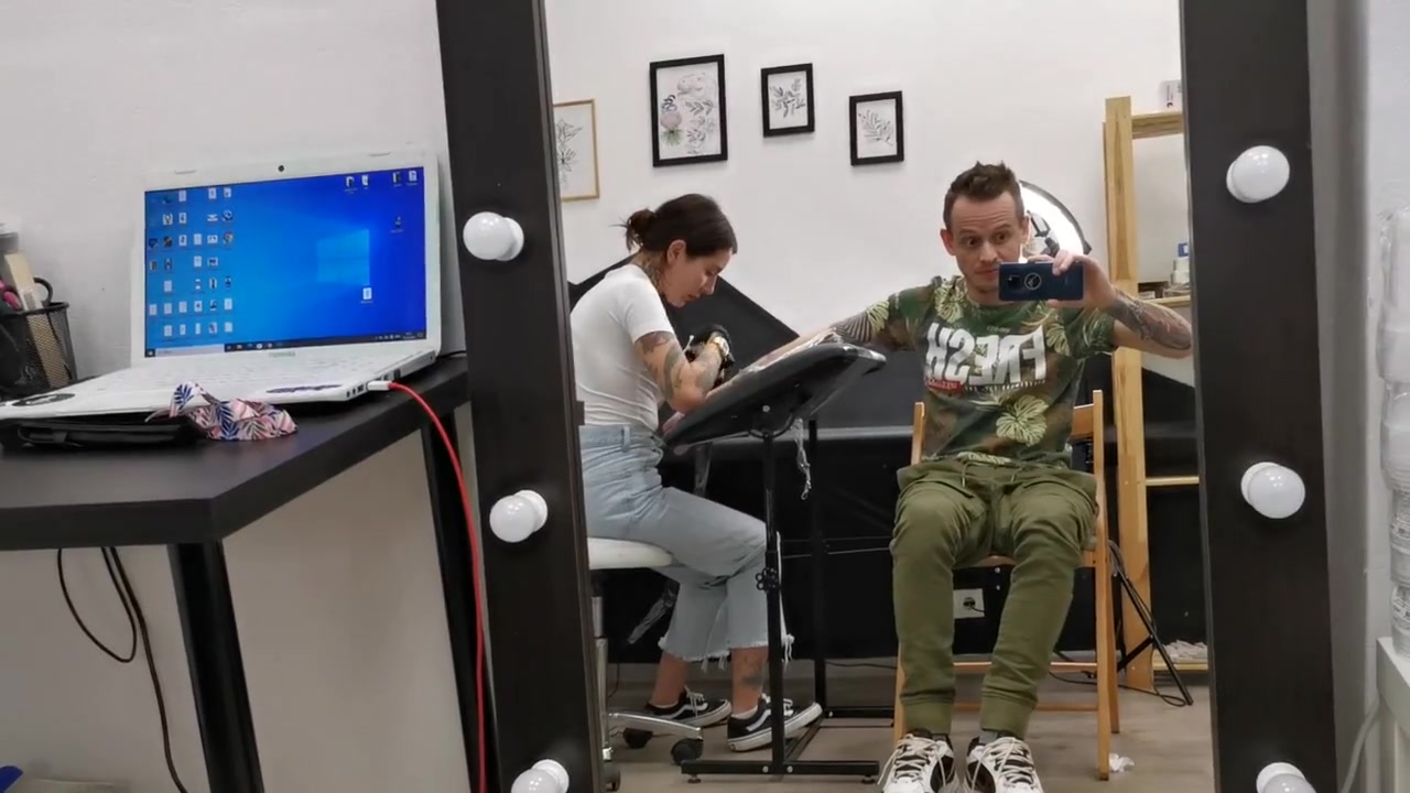 Жаркий секс крупным планом в тату салоне с горячей девушкой