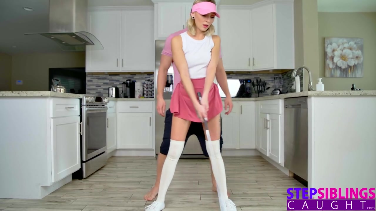 «Сексапильная телочка играя в гольф в короткой юбке привлекла на себя внимание мужика, который решил ей помочь. Ловелас охотно пристроился к ней сзади и умело показал ей как правильно держать клюшку, во время чего не упуская возможности стал тискать ее за попку. Белокурая куколка сразу поняла что он от нее на самом деле хочет, и как только он приподнял юбку малышка испытала ни с чем не сравнимое проникновение сзади. После парочка расположилась на диване на котором устроили жаркий секс во всех излюбленных позах, в завершении чего жеребец испустил струю спермы ей на киску.»