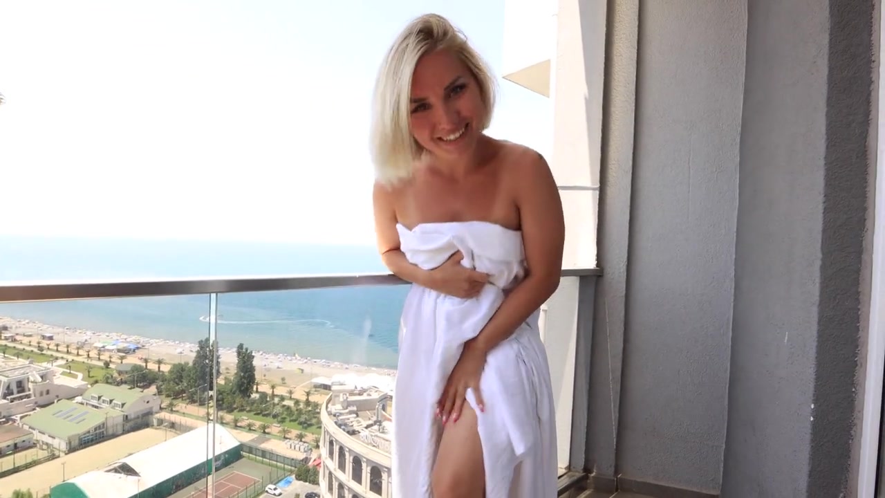 «Роскошная девушка вышла на балкон и начала заигрывать с парнем, показывая ему свои классные натуральные сиськи. Жеребец сразу завелся и попросил малышку проследовать с ним в комнате. Как только кавалер лег на кровать, девчонка оседлала его сверху, а точнее села киской ему на лицо. Жеребец умело делал ей куни который она так сильно любит, и как только ее дырочка стала влажной, он уверенно стал драть сучку между ножек, наблюдая какой кайф испытывает подруга от его активных действий и как часто она получает желанные оргазмы.»