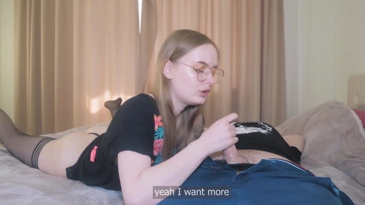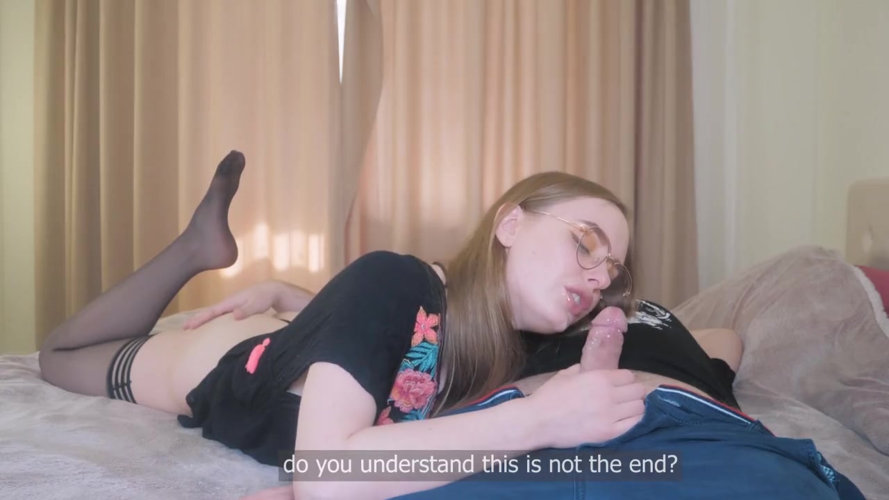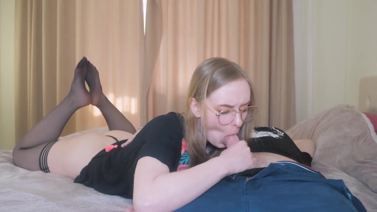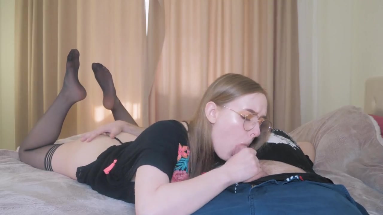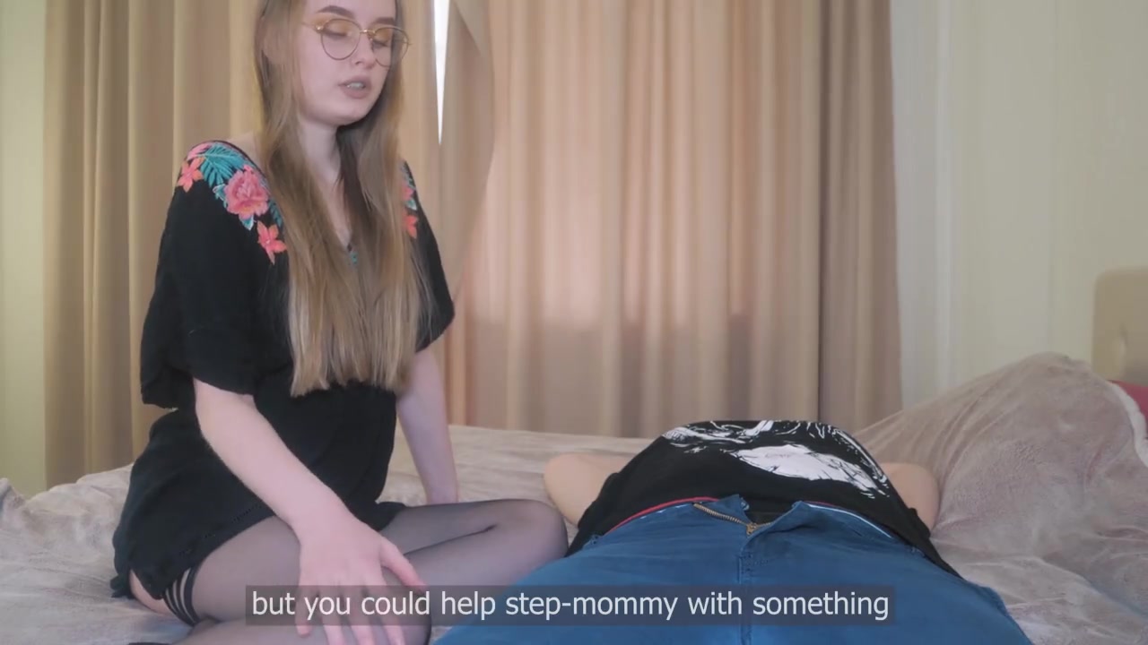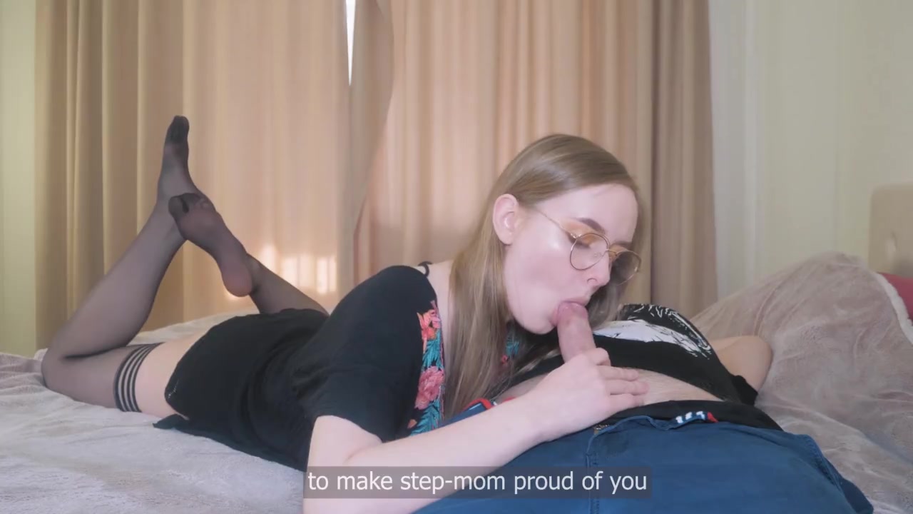 «Сексуальная молодая мамочка присела на кровать к сыну и сразу начала его отчитывать за неуспеваемость в школе. Малышка сразу поняла как он сможет искупить свою вину и не долго думая начала ласкать его в области пениса. Наслаждаясь ласками член чувака быстро стал большим и твердым, что сподвигло мамулю ухватиться за него губами и начать на опыте сосать. Жеребец давно мечтал о таком мощном оральном удовольствии, и когда невероятно сильный экстаз достиг своего максимума, он не жадничая на сперму выстрелил нимфе в рот внушительный камшот, сперму которую она растерла по своим сиськам.»