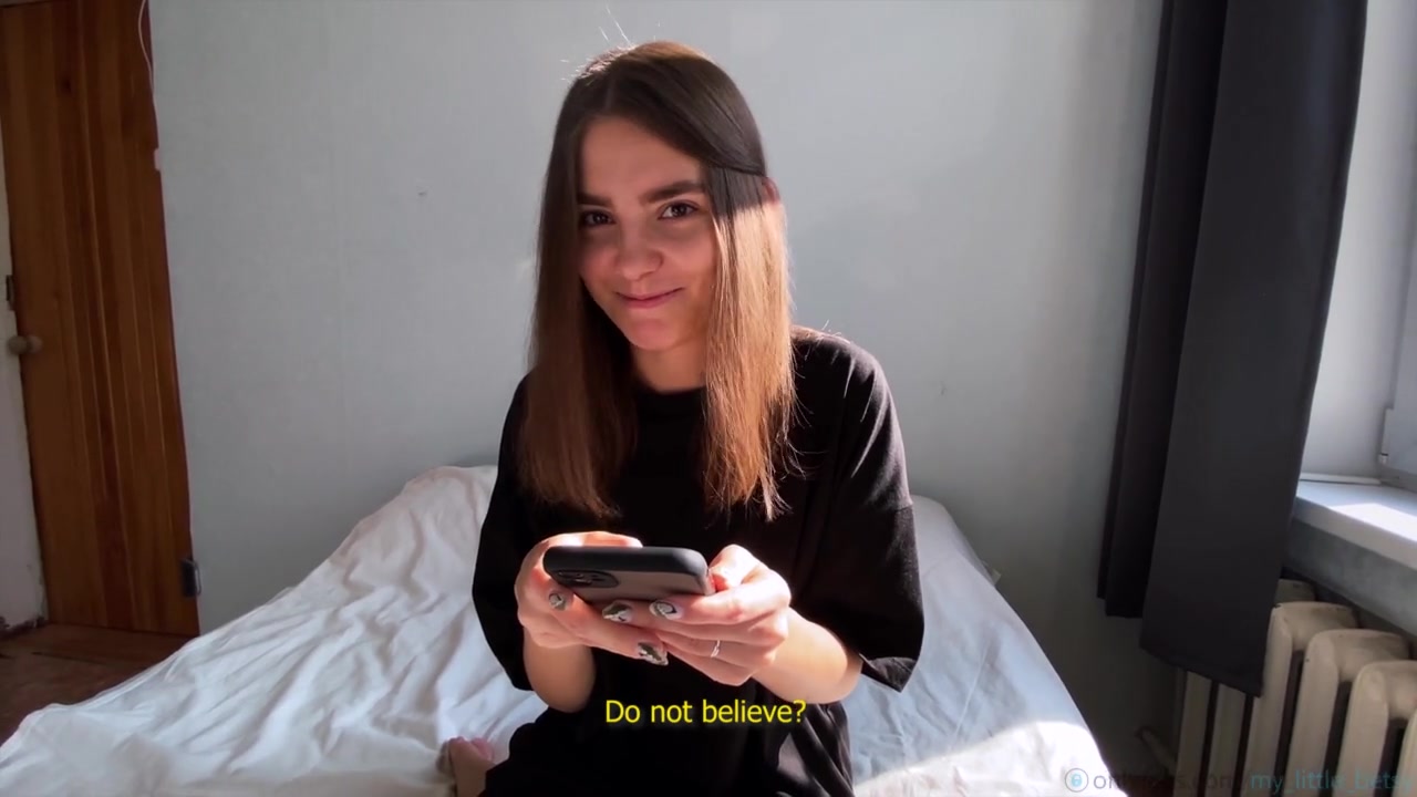 «Русская крошка Бетси листает с телефона порнушки, в надежде найти что-то интересное. Но все сюжеты уже давно заезженны и красотке скучно. Хорошо ее бойфренд еще тот авантюрист, который предлагает брюнетке снять футболку и показать какое сексуальное белье на ней. С таким жарким телом малышке самой надо сниматься, потому она заинтересованно начала сосать. Минет от первого лица настолько разгорячил ее пилотку, что оставалось лишь подобрать позу и жарко трахаться. Ее пошлая фантазия получила удовлетворение, а киска кончила, но остался камшот на милое лицо.»