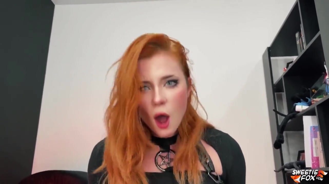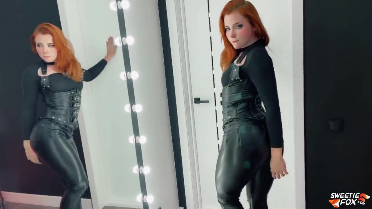 Рыжая бестия в кожаном прикиде напрашивается на жесткий секс раком