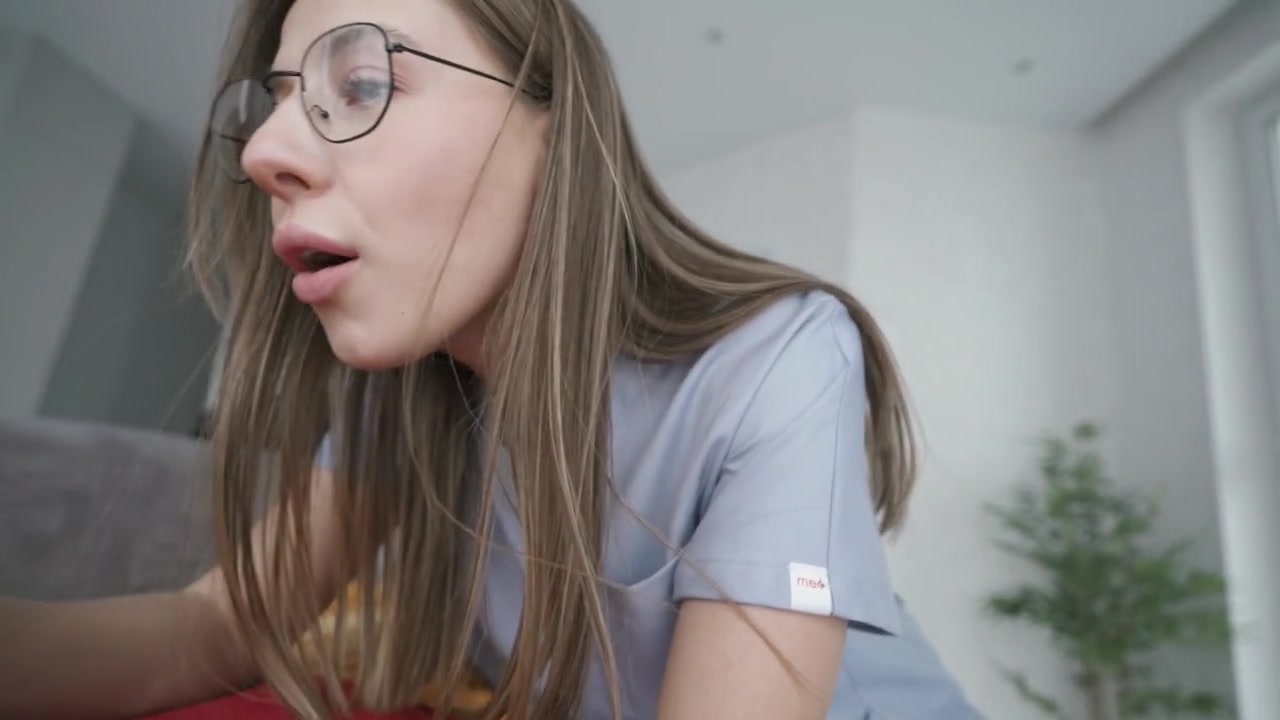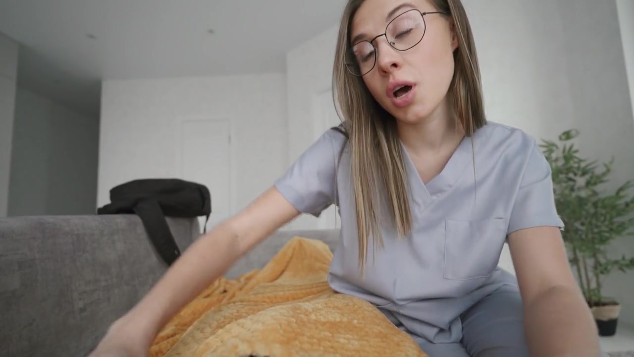 «Милашка медсестра спешит на работу, но ей преходится уделить внимание бойфренду, который притворяется больным. Вместо простуды у него имеется лишь большой стояк под одеялом, от которого русская телочка не отказалась. Она игриво подрочила хуй руками, а затем чудесно отсосала. От первого лица грудастая красотка была еще той горячей штучкой, готовой вскоре оседлать мощный хер и просто бурно трахаться. На смену сучка явно опоздала, так что дождется камшота на живот и натуральную грудь.»