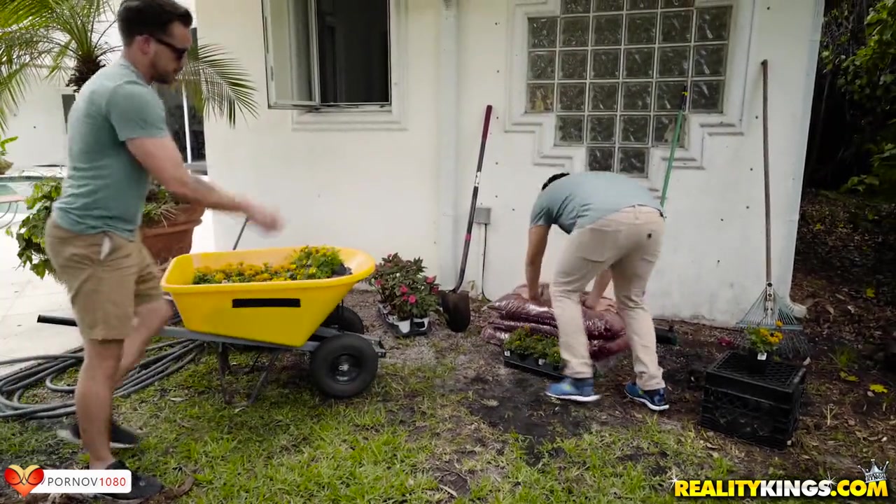 «Аппетитная зрелая домохозяйка следит за работой двух молодых садовников, которые собрались обновить ее сад. Требовательная дамочка хочет чтобы все было так, как она это подставляет, потому специально проводит жесткий инструктаж для работяг. После ее ждет приятный душ, где полностью голая блондинка с большими сиськами выглядела чертовски соблазнительно. Один парниша даже рискнул забраться в дом, чтобы разглядеть эти буфера поближе. Конечно от увиденного встал хуй и мамочке такой толстый хер очень даже пригодится в душе. Она лишит развратника штанов и седлает сочный минет даже несмотря на размеры члена. Парнише предстоит круто выебать опытную потаскуху, которая намерена долго ебаться и глубоко сосать ради бурного оргазма.»