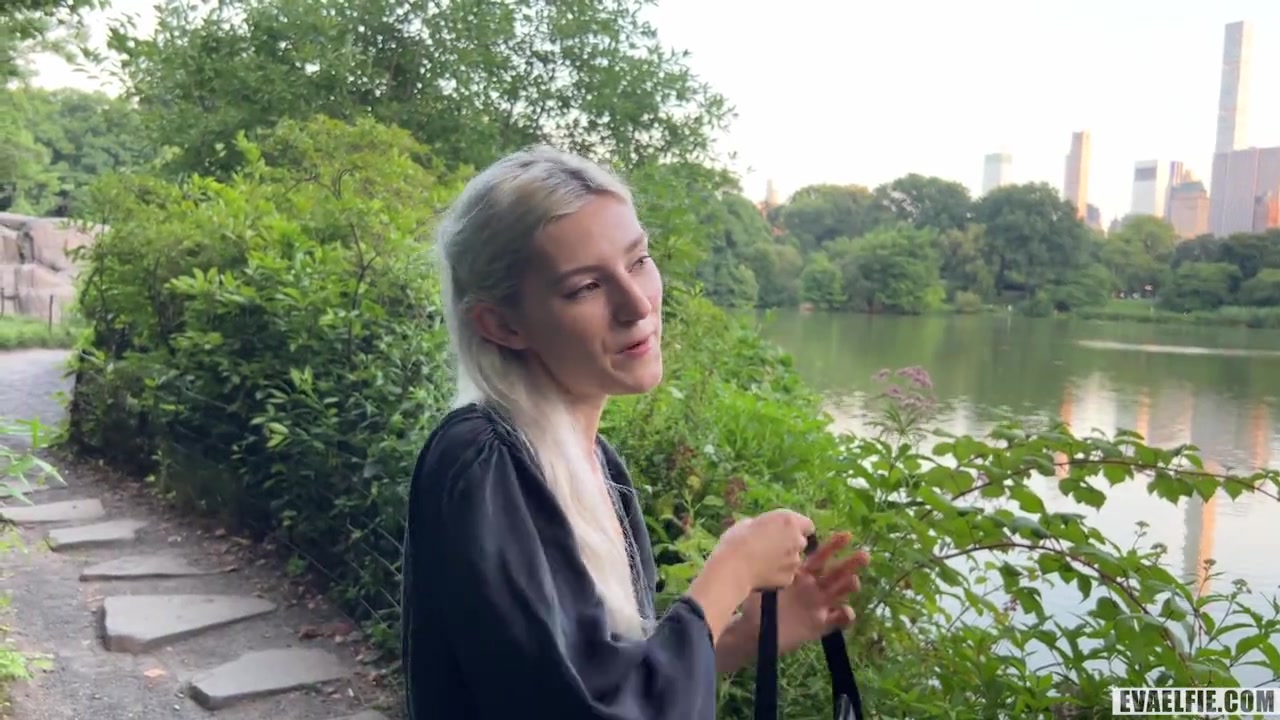 Распутная Eva Elfie берет толстый американский хуй в рот на улице, а дома горяче ебется