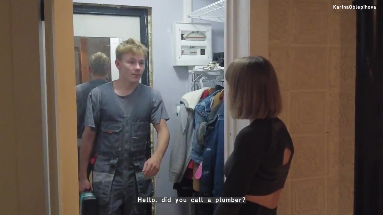 У сучки текут трубы и возбужденная киска, потому ее ебет сантехник