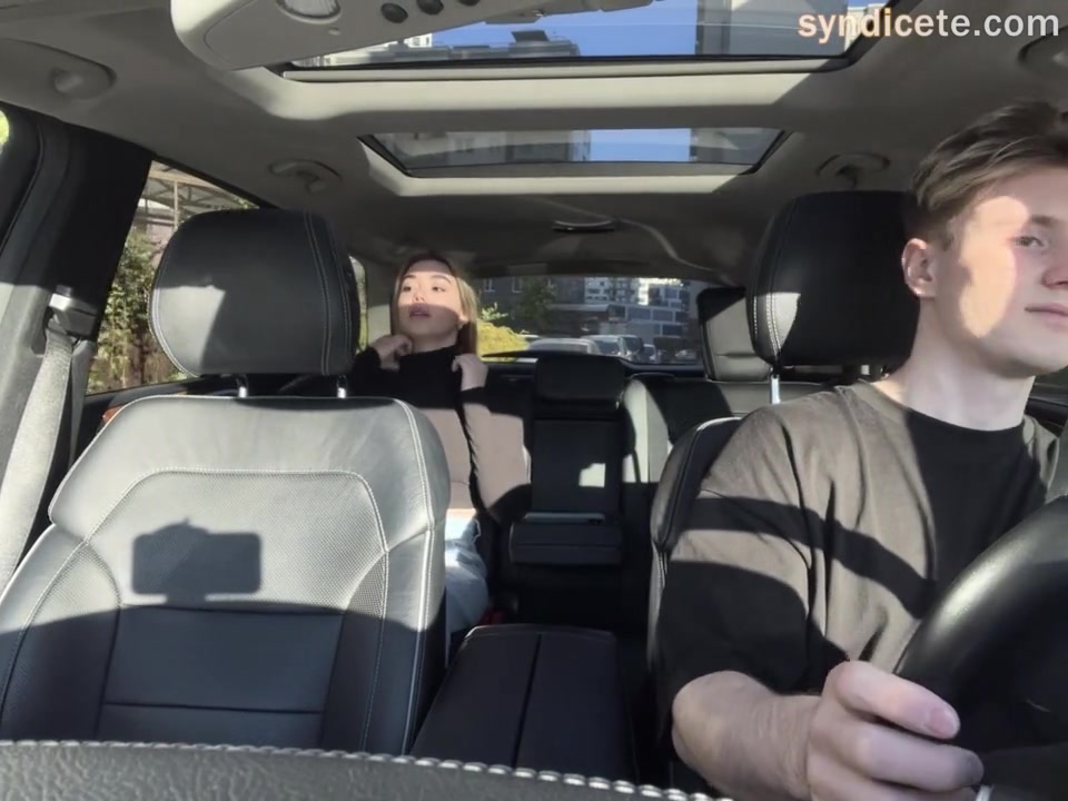 Приятный минет на заднем сидении машины таксисту сделала русская малышка