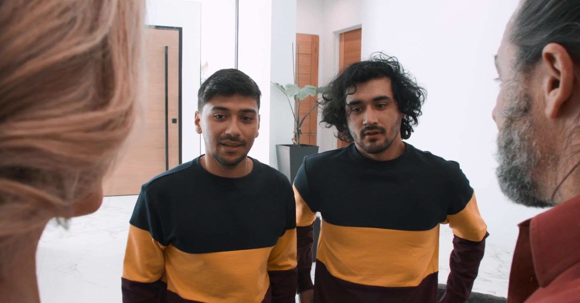Пацаны вдвоем трахают белокурую мачеху красном платье