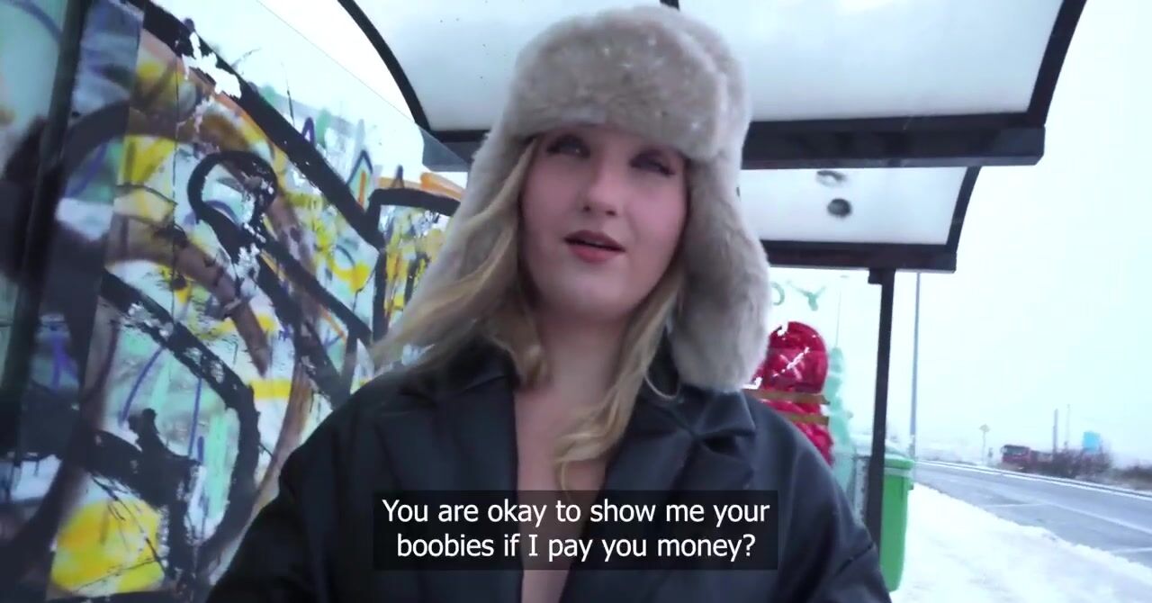Милая девушка в шапке ушанке соглашается на секс за деньги