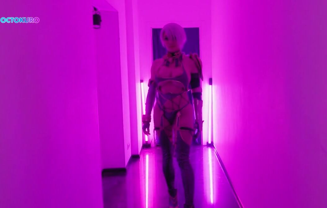Жаркая косплейша с силиконовой грудью ублажает парня