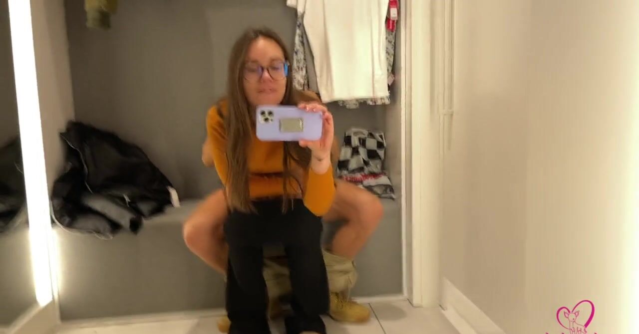 «Телка потянула парня по магазинам и набрала довольно много одежды. Только вот бойфренд не собирается раскошеливаться. Приходится черноволосой девке в очках договариваться с ним. Брюнетка поступает очень просто, она опускается на колени и принимается страстно сосать хуй в примерочной. Оральные ласки в общественном месте возбуждают. Бестия не только сосет, но и трахается, а кончать ей можно на лицо. После такого пацан согласен купить всё что угодно.»