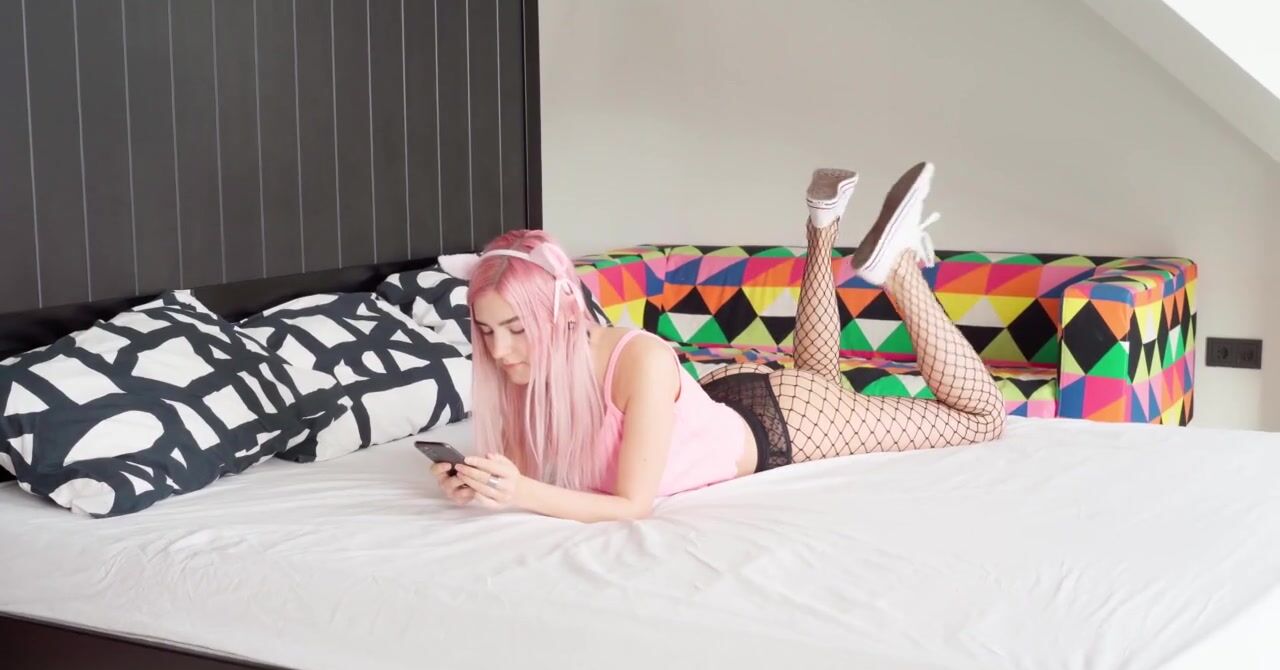 Милая Eva Elfie с розовыми волосами трахается с парнем