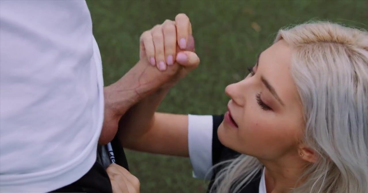 «Милая блондинка с большими натуральными сиськами поддерживает любимого парня, который играет в футбол. А после матча жаркая телка ведет бойфренда домой, желая заняться с ним страстным сексом. Фигуристая крошка обожает крепкий член пацана, она наслаждается не только вагинальной еблей с ним, но ещё и сосет фаллос со вкусом. Кажется, что стройная цыпочка может кончить даже от оральных ласк перед трахом.»