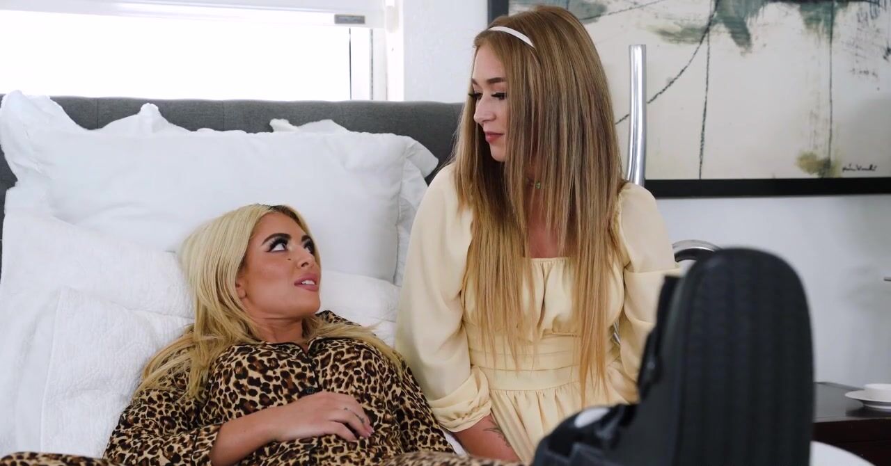 «Мать засыпает, так что развратная падчерица может заняться любимым делом - трахнуться с отчимом. Мужик переживает, что жена может проснуться, но белокурая телка очень уж соблазнительна, поэтому он не может ей отказать. Проказница принимается сперва делать ему качественный минет, а потом отдается в киску. Эта жаркая блондинка наслаждается половым актом и просит спустить сперму ей на лицо и на грудки.»