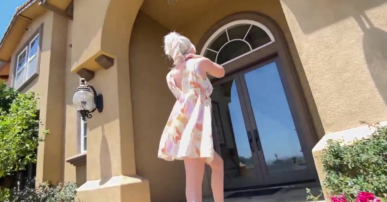 «Блондинка в легком платье очень хочет ебаться и спешит к соседу, чтобы снова насладиться его членом. Делает это жаркая цыпочка несколько дней в неделю, лысый мужик всегда ублажает её сексуальные желания. Привлекательная бестия сперва берется полировать его пенис, наслаждается кунилингусом и отдается в пизду. Крепкий хуй доставляет кайф, отчего белокурая сучка громко стонет и кончает несколько раз подряд.»