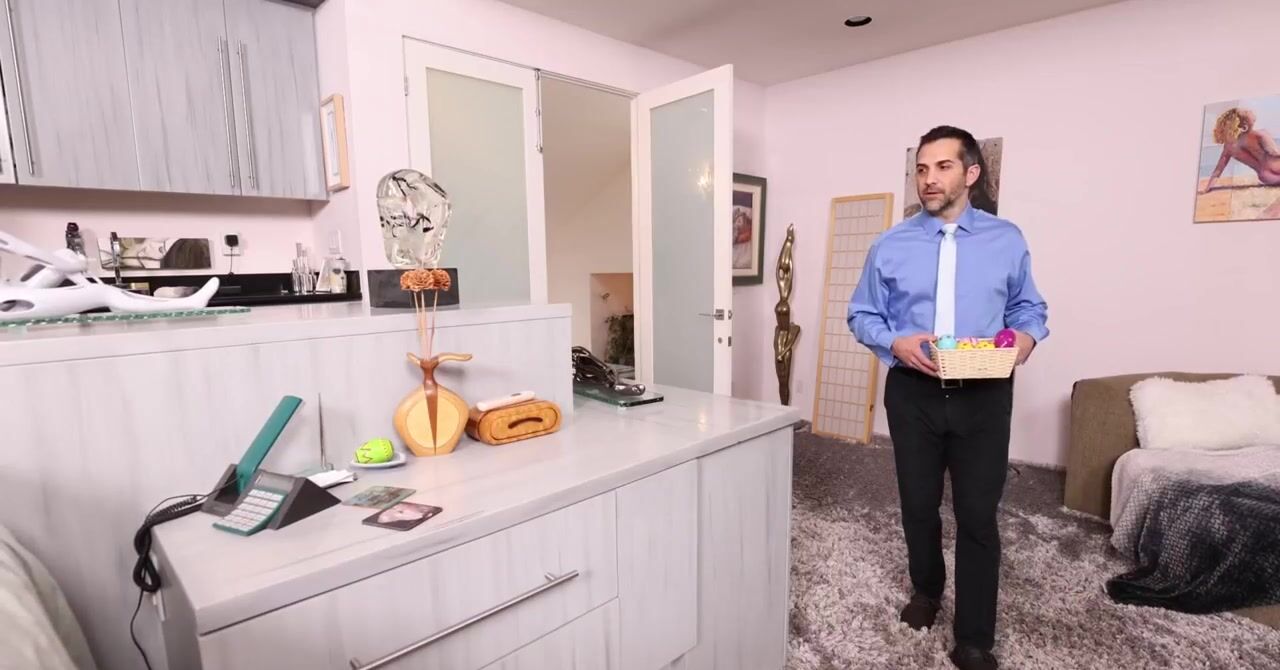 «Есть у американцев такая традиция, на пасху они сперва прячут яйца, а потом их ищут. Мужик успешно находит все и получает награду от белокурой милфы с большими силиконовыми сиськами. Эта опытная бестия в сексуальном белье берется делать ему качественный минет, после которого уже отдается в пилотку. Развратница прекрасно проводит время и получает оргазм, а сперма должна пролиться на её красивое лицо.»
