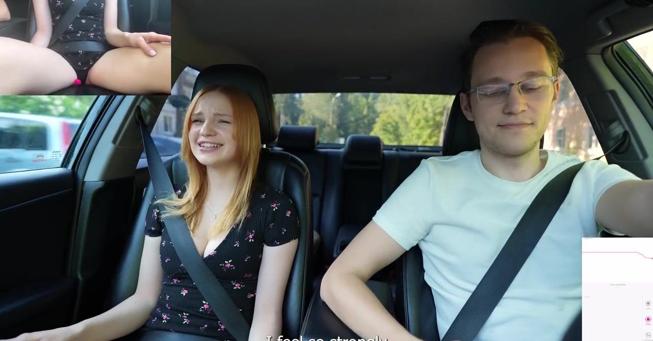 «Рыженькая девушка перед поездкой с парнем на машине в другой город, решила засунуть в киску вибратор. Пульт управления она вручила бойфренду, которого это всё нереально возбудило. Игривая крошка стала постанывать на пассажирском сидении, расставляя ноги в стороны. Девка не выдержала, достала пенис парня со штанов и принялась его смачно сосать. Пришлось даже машину остановить, чтобы трахнуть проказницу.»