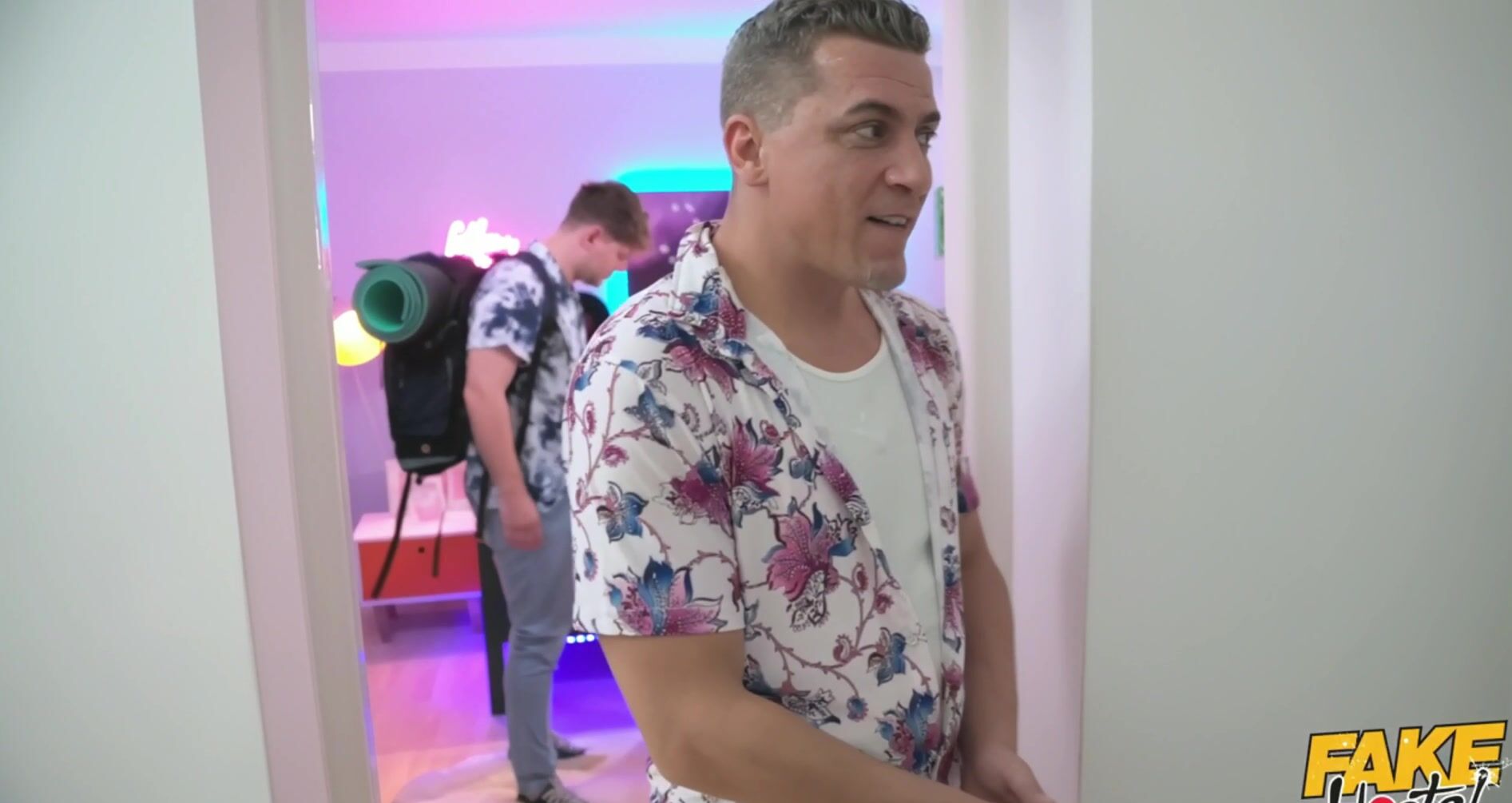«Привлекательная брюнетка в короткой юбке не только строит глазки администратору хостела пока её парень заселяется. Черноволосая телка поднимает розовую юбку и показывает упругую попку и киску. На девушке нет трусиков, что ещё сильнее возбуждает мужика. Крошка ещё и маленькие сиськами оголяет. Уже вскоре эта развратница ебется со своим бойфрендом, а потом отдается и админу, когда бойфренд уходит в душ.»