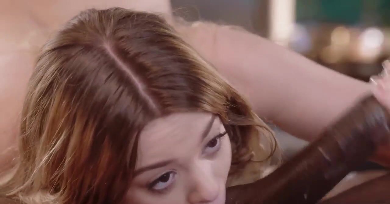 «Милая блондинка Molly Little влюбляется в негра из-за размера его члена. Привлекательная крошка обожает когда у парня такой толстый и длинный пенис. Стройная проказница с маленькими сиськами спешит с ним развлечься и перед вагинальным сексом наслаждается кунилинусом. Изначально негр вылизывает ей писю, а потом угощает фаллосом. Девка сделала ему минет и отдалась в вагину, кончив во время ебли несколько раз.»
