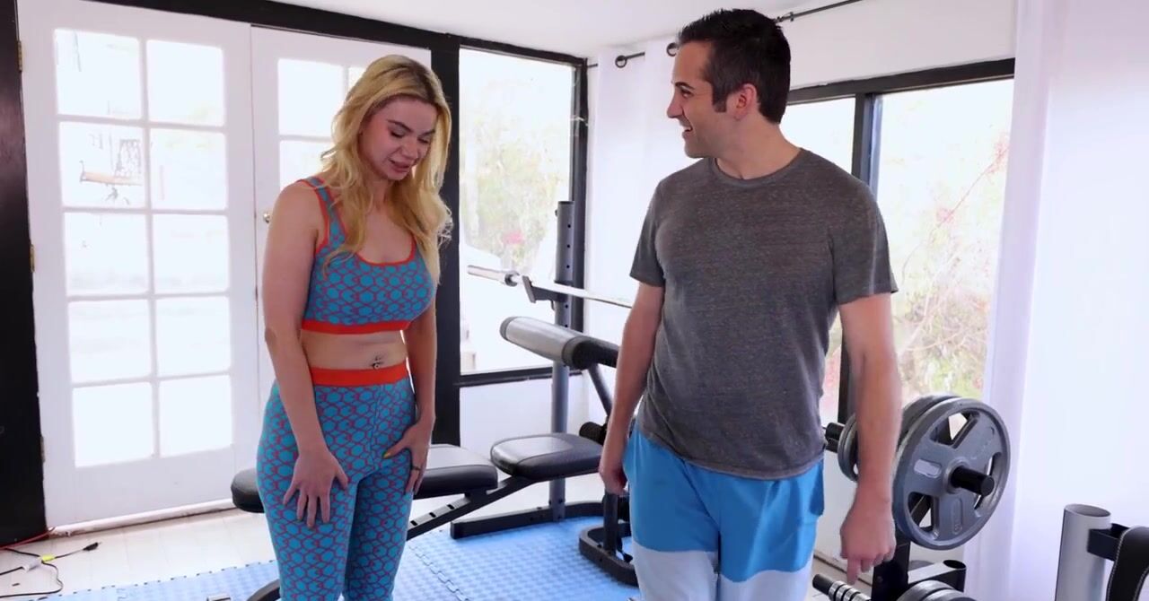 «Стройная милфа со светлыми волосами нанимает личного тренера, с которым собирается заниматься в домашнем тренажёрном зале. Эта белокурая телка в обтягивающих лосинах выглядит очень даже привлекательно. Она во время тренировки как можно сильнее прогибает спину и прижимается к тренеру, дико его возбуждая. Уже вскоре резвая цыпочка решает развлечься, она спешит сделать смачный минет и отдается в волосатую пизду.»
