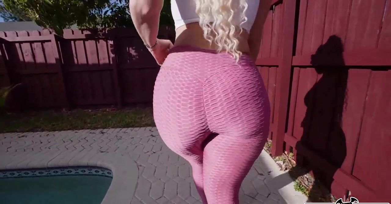«Блондинка с огромной жопой надевает обтягивающие лосины и соблазняет негра с большим членом на секс. Она сперва лишь позирует, вставая раком, а потом трется задницей о пах чернокожего самца, предлагая ему пошалить. Белокурая милфа спускает штаны, а потом принимается делать глубокий минет, сосать ей нравится, она сама же получает от минета удовольствие. Но больше всего кайфа она получает от межрасовой ебли.»