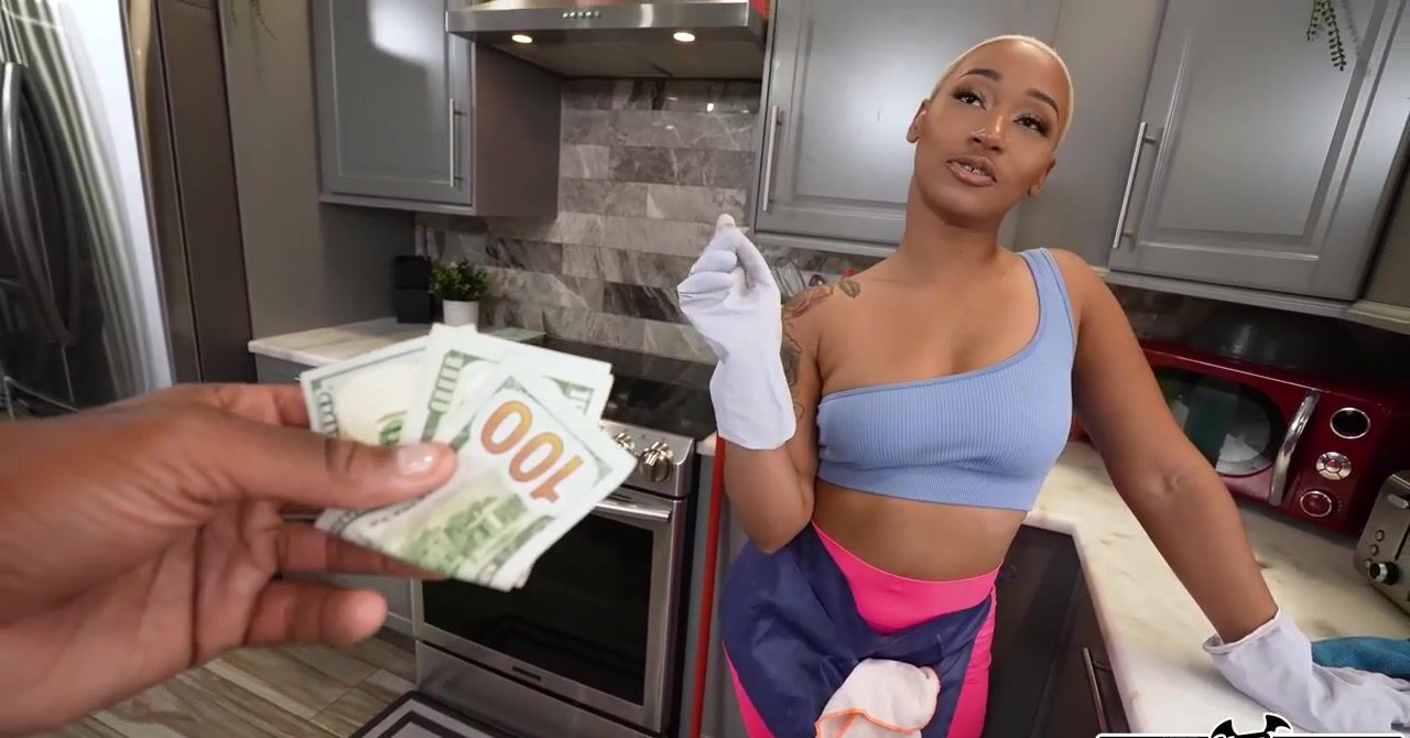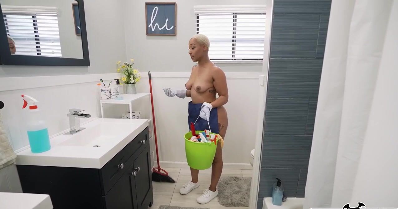 «Темнокожая домработница с короткими волосами очень возбуждает хозяина дома, в которой ей сегодня предстоит убираться. Эта негритянка имеет сочную попку, которая поднимает пенис мужика. Он готов заплатить любые деньги, только бы привлекательная телка занялась с ним сексом. Цыпочка соглашается, она принимается отсасывать сперва большой черный член, а потом отдается в бритую пизду. Ебля, кстати, ей тоже удовольствие приносит.»