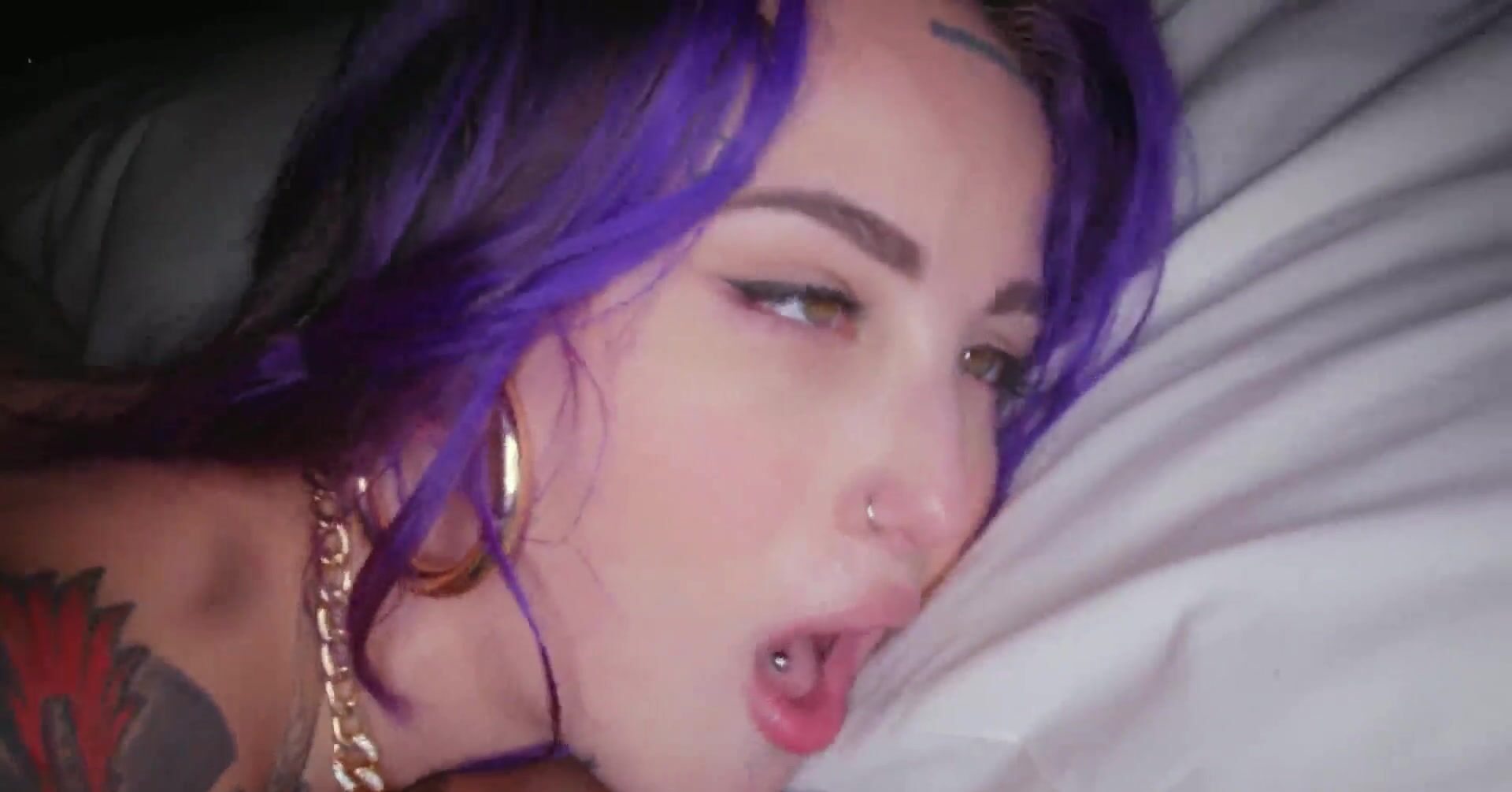 Неформалка с татуированным телом кончает от черного хуя