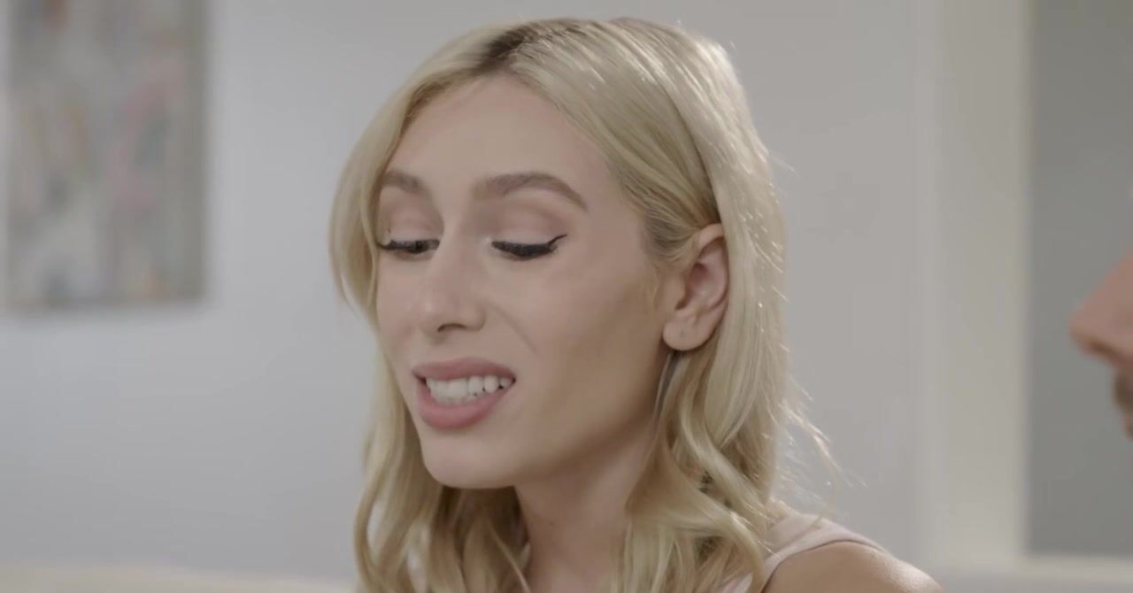 «Блондинка поднимает топ перед приятелем и показывает свои красивые натуральные сиськи. Эта белокурая крошка явно захотела секса и повела за собой друга в спальню, где принялась делать ему смачный минет на кровати. Чел же в ответ вылизал пизду проказницы, получив удовольствие от этого, лизать её писю оказалось приятно. Как и трахать развратницу, которая оказалась страстной любовницей. Ебалась она в разных позах.»