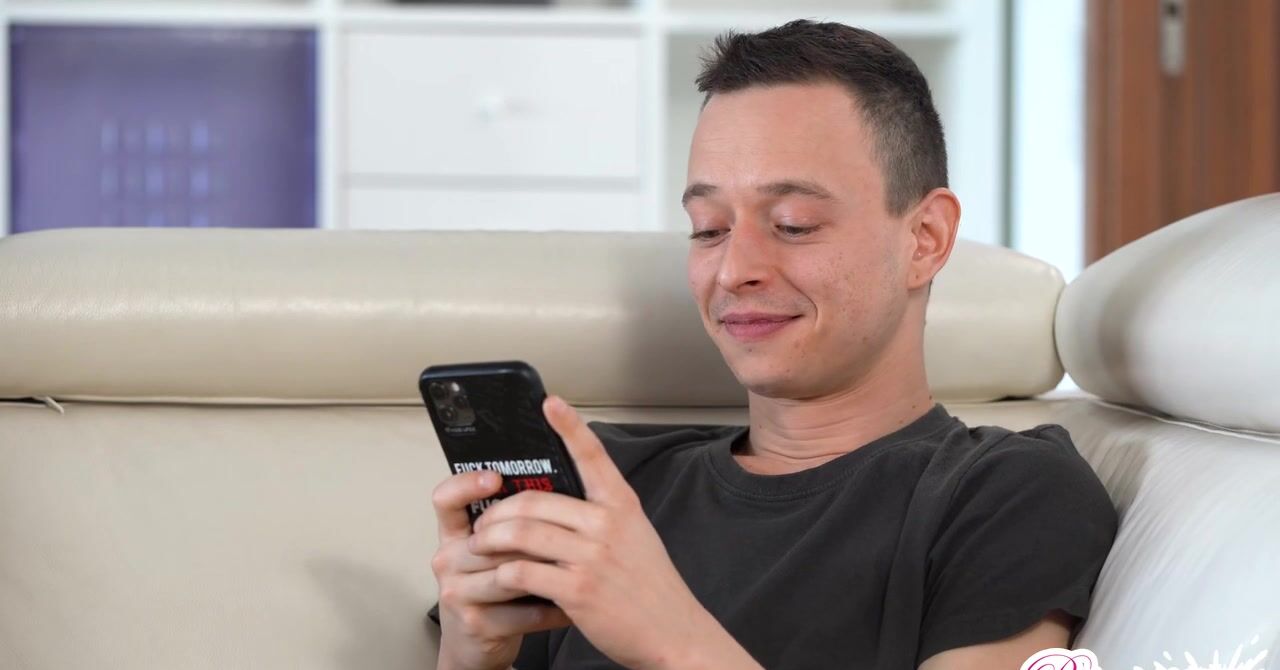 «Красивая блондинка сперва мило общается со своим парнем по телефону и говорит о том как она его любит, а потом цыпочка решает заняться сексом с приятелем. Белокурая проказница быстро возбуждает друга и делает ему минет на диване. Измена доставляет стройной крошке с маленькими сиськами удовольствие, она наслаждается минетом и жаркой еблей. Пацан тоже кайфует, ведь подружка оказывается нереально развратной штучкой.»