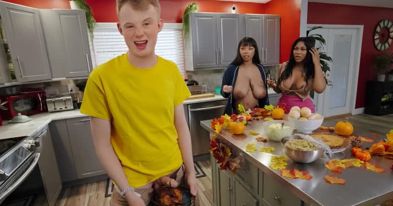 «Белый пацан заходит в гости к чернокожим соседкам, которых застает за однополой еблей. Одна жопастая бестия с татуировками на теле поставила вторую раком и трахала её страпоном. Уже вскоре эти возбужденные бестии решили переключиться на паренька, чтобы воспользоваться его членом. Цыпочки стали смачно отсасывать хуй, а потом отдались в киски, всё ещё продолжая ебать друг дружку искусственным хуем в пизденки.»