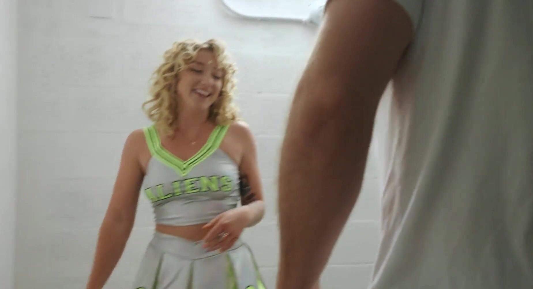 «Белокурая чирлидерша с кудрявыми волосами поднимает свою короткую юбку и соблазняет лысого мужика на жаркий секс. Он только раз развлечься с такой похотливой студенткой, которая имеет соблазнительное тело и привлекательную внешность. Цыпочка оказывается нереально развратной, она прекрасно отсасывает фаллос мужчины, а потом отдается ему в пизду и наслаждается половым актом, очень приятно постанывая.»