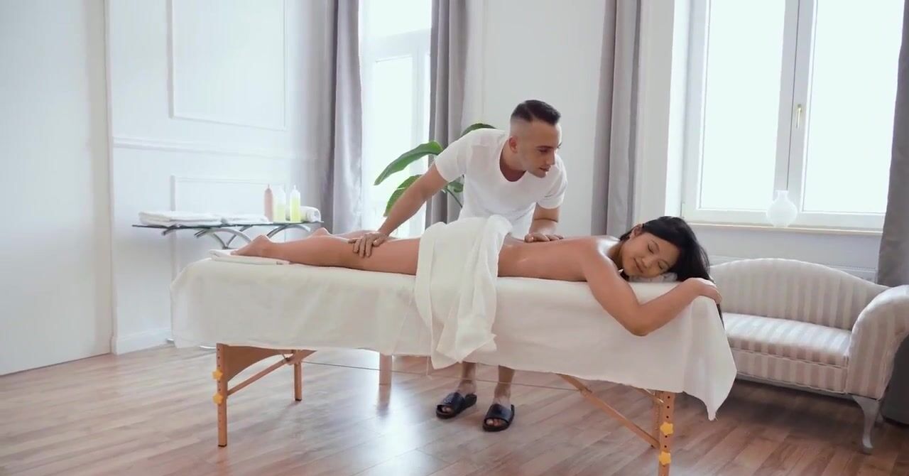 «Азиатка посещает дорогой массажный салон, чтобы расслабиться, но так получается, что она возбуждается и теперь хочет заняться сексом. Желание клиентки для массажиста - закон. Поэтому он принимается теперь ласкать её бритую киску и достает твердый член, чтобы удовлетворить все её сексуальный потребности. Довольная проказница с кайфом отсасывает пенис и наслаждается вагинальным сексом, получая удовольствие.»