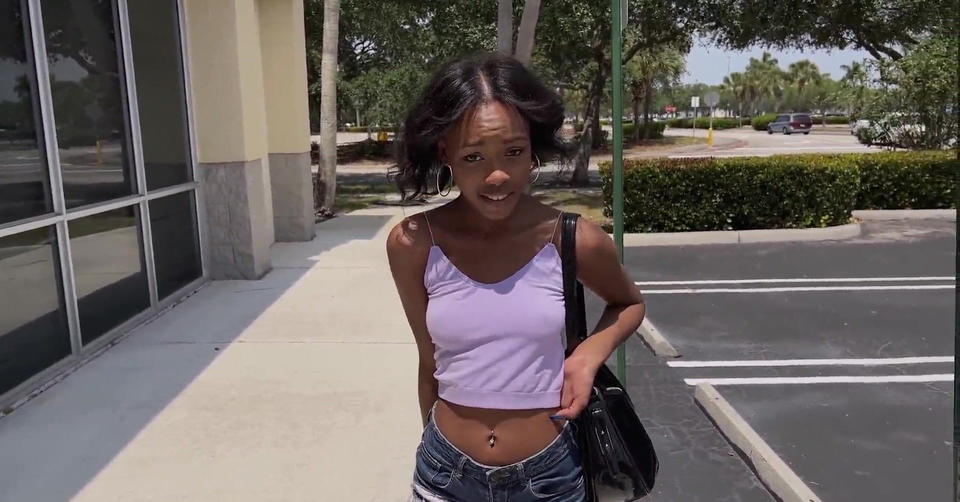 «Худенькая негритянка безумно возбуждает белого приятеля и он ей в этом признается, а потом достает перед стройной подружкой толстый член в машине. Игривую крошку с маленькими сиськами это не смущает, она принимается делать глубокий минет, а потом предлагает поехать к другу домой, чтобы там заняться сексом. Стройная проказница с маленькими сиськами насладилась жаркой еблей в самых разных позах, её было удобно даже на весу трахать.»