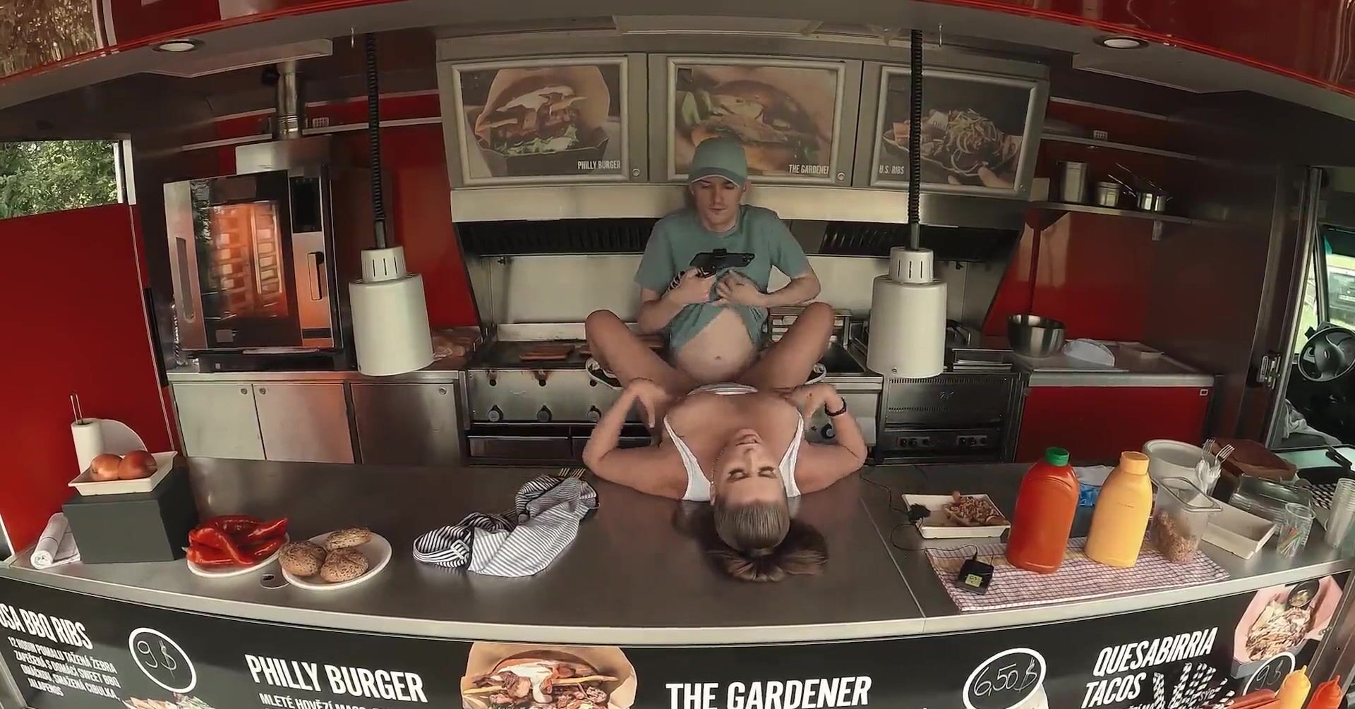 «Красотка пытается устроиться работать в уличную забегаловку, в которой готовят хот-доги. Цыпочка становится стажеркой и учится у повара, но у неё ничего не получается, что расстраивает привлекательную телку. Она решает заняться тем, что у неё получается лучше всего. Привлекательная бестия опускается на колени и принимается делать парню страстный минет, а потом отдается ему в пизду и получает удовольствие.»