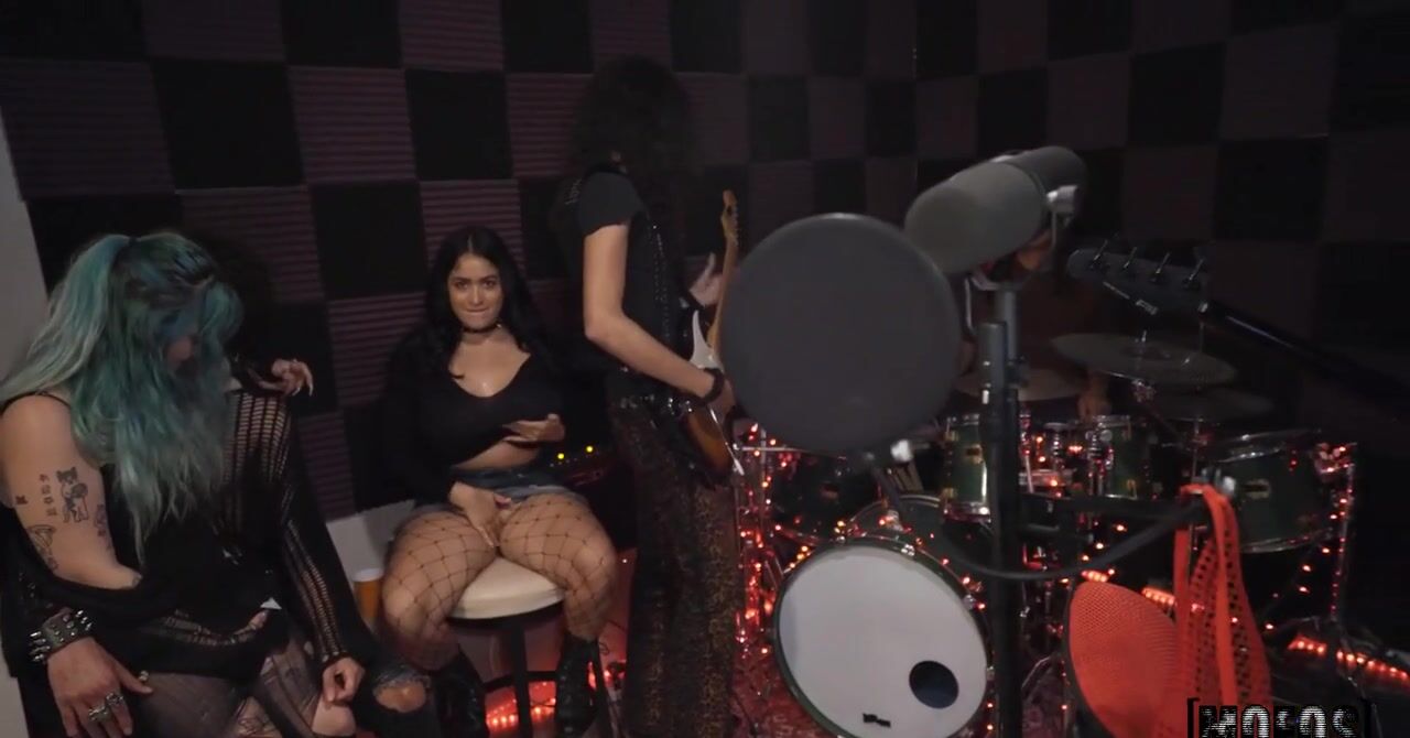 «Жопастая фанатка попадает на репетицию любимой группы и соблазняет солиста на секс. Черноволосая цыпочка с большой попой и сиськами опускается перед ними на колени, чтобы сделать минет. Пока вся остальная группа репетирует, эта жаркая сучка отсасывает его ствол. На этом бестия не останавливается, она ещё и в пизду отдается. Девчонка насаживается киской на фаллос и активно скачет, получая удовольствие.»