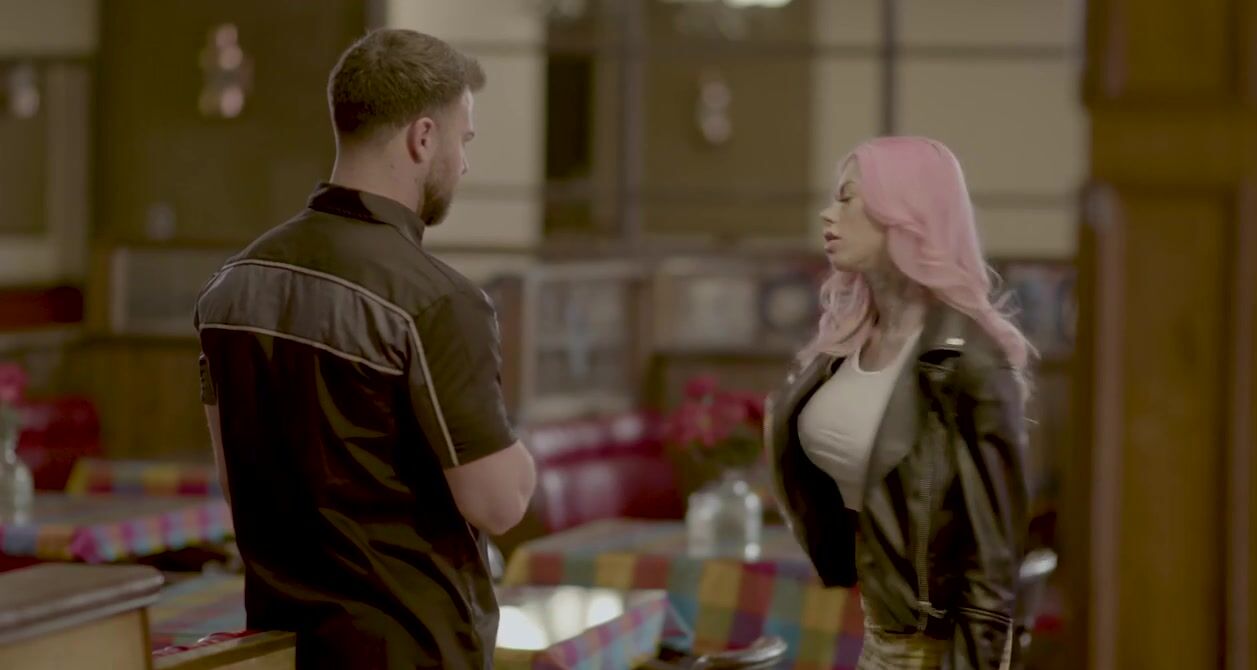 «Пара решает заняться сексом прямо в ресторане, а администраторша заведения должна на них смотреть. Это безумно заводит как парня, так и его развратную девушку в шикарном белье. Эта похотливая брюнетка берется сосать пенис бойфренда перед админшей, которая принимается ласкать пизду, смотря на еблю со стороны. Её это возбуждает, работница ресторана сама хотела бы присоединиться и насладиться еблей, но не может.»